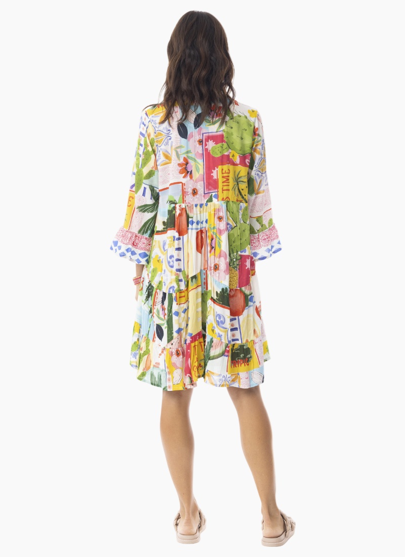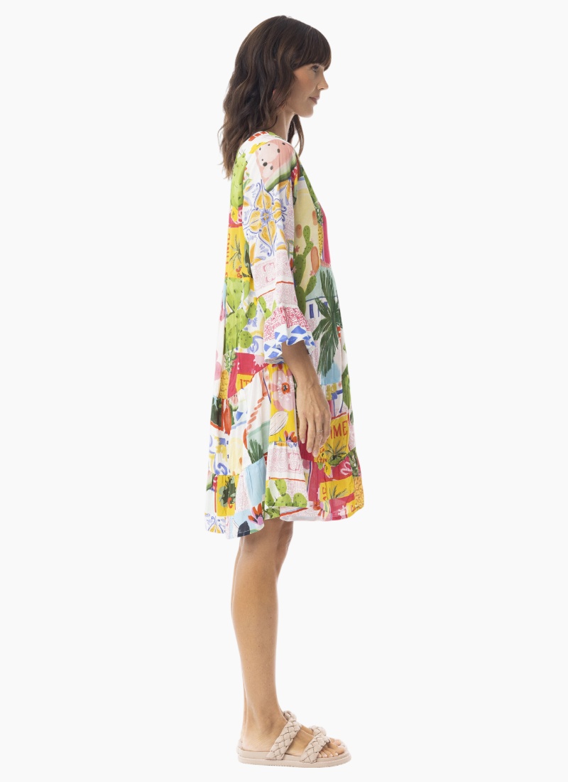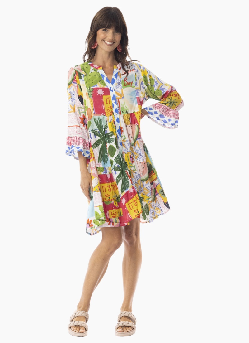 Introducing the Erica Dress Tiered Frill Hem from Escape. This playful dress brings vibrant summer energy with a breezy silhouette and eye-catching multicolour print.
