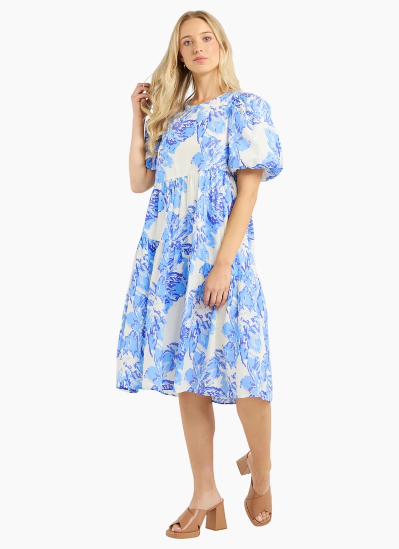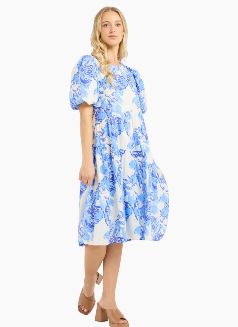 Get ready to embrace effortlessly cool vibe in our cute Becks Dress. Showcasing pretty puff sleeves for a playful touch, while the flared body with a asymmetric skirt panels adds movement and ease. The round neck and the lovely rayon blend fabric ensures comfort and style all day long. A must have for summer, dress up with strappy sandals or down with flats. 100% Cotton