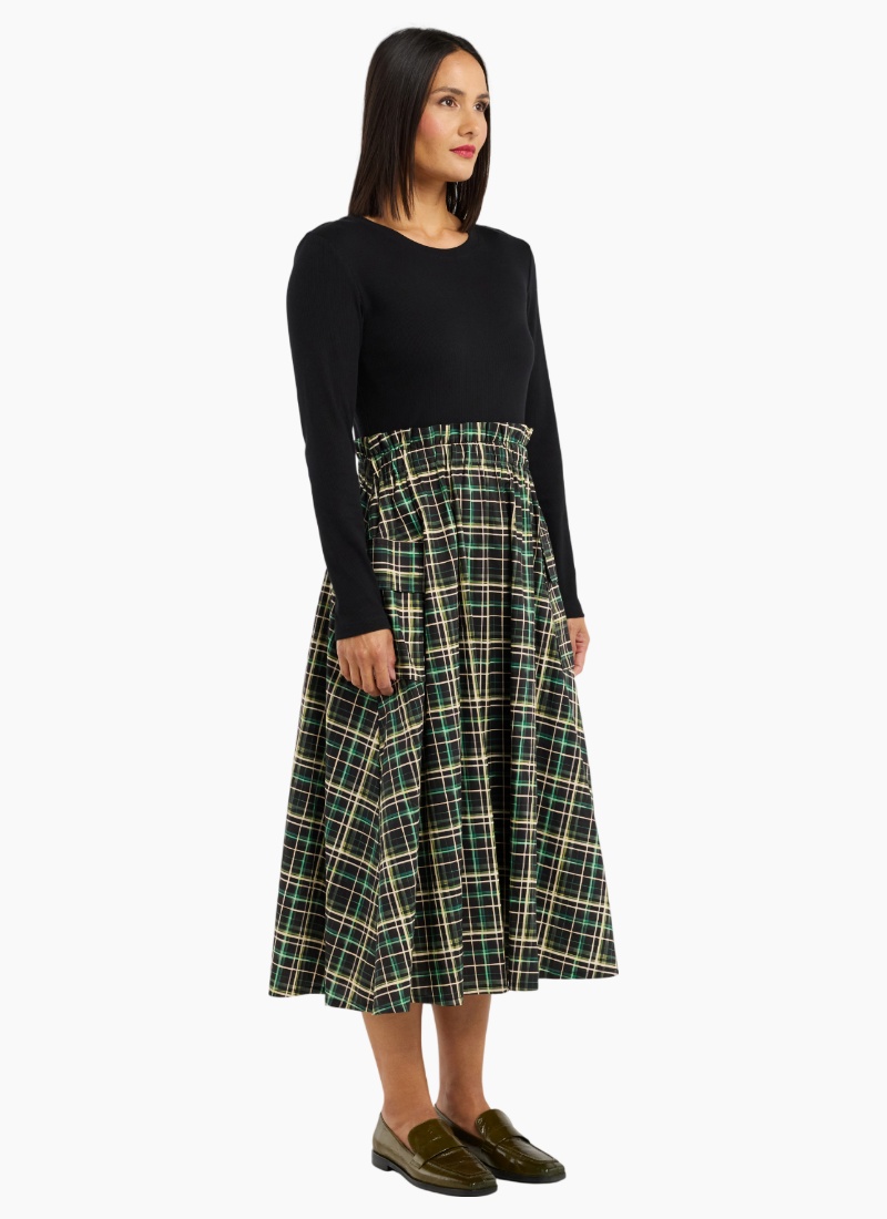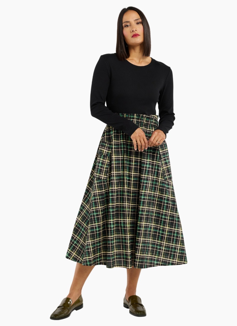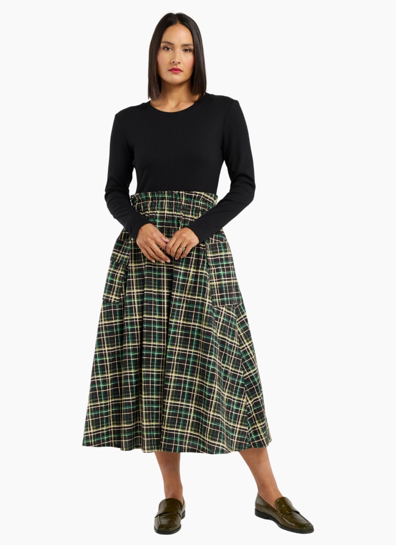 Effortlessly stylish and beautifully balanced, the Fallon Dress combines the comfort of a soft, plain knit top with the modern charm of a co-ordinating tartan skirt. The elasticated waist creates a flattering silhouette while offering easy, everyday wear. Functional external pockets add a relaxed, contemporary touch, making this midi dress both practical and polished. 63% Cotton 28% Acrylic 9% Spx