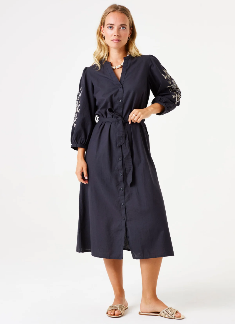 The Garcia Clara Dress in black brings together the classic charm of a shirt style with a fun twist, making it your go-to for any special occasion. Its sleek design effortlessly transforms from casual to chic, adding a splash of playful elegance to your event wardrobe. Dress it up with your favourite accessories and step out with confidence and flair!
