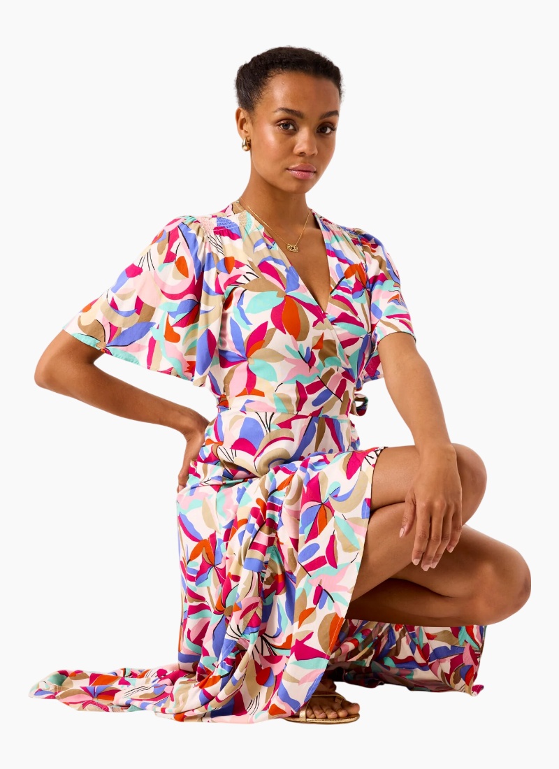 Step into summer with the Garcia Samara Wrap Dress in Dazzling Blue. This stunning midi-length dress features a flattering wrap style that’s perfect for beach weddings, holidays, and any sunny event. The vibrant colors make it an eye-catching choice that’s as fun as your summer adventures. Lightweight and effortlessly chic, it’s your go-to dress for warm days and balmy nights.