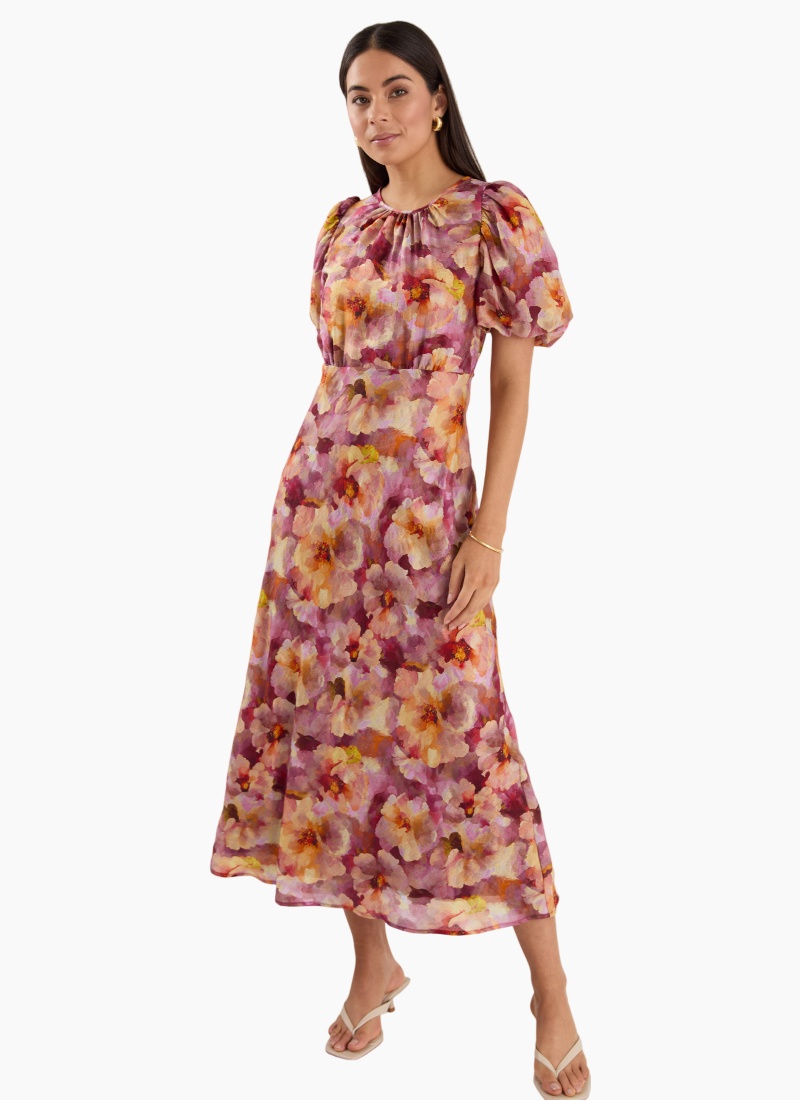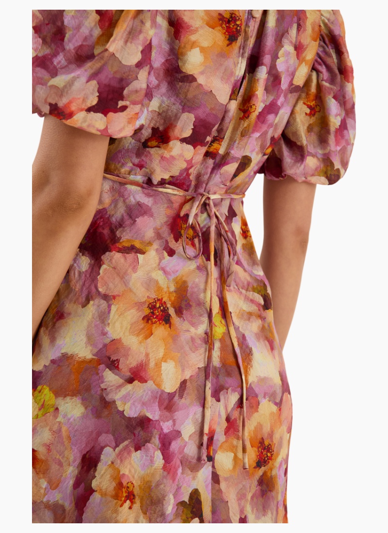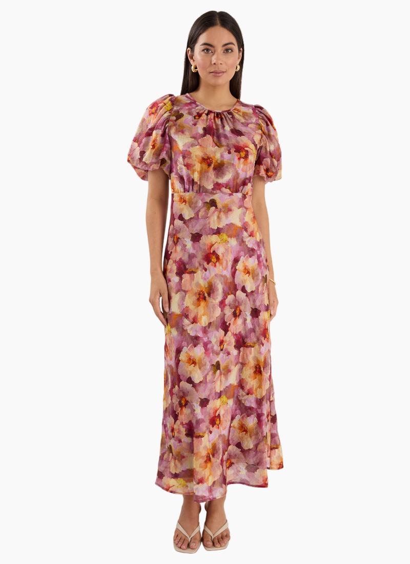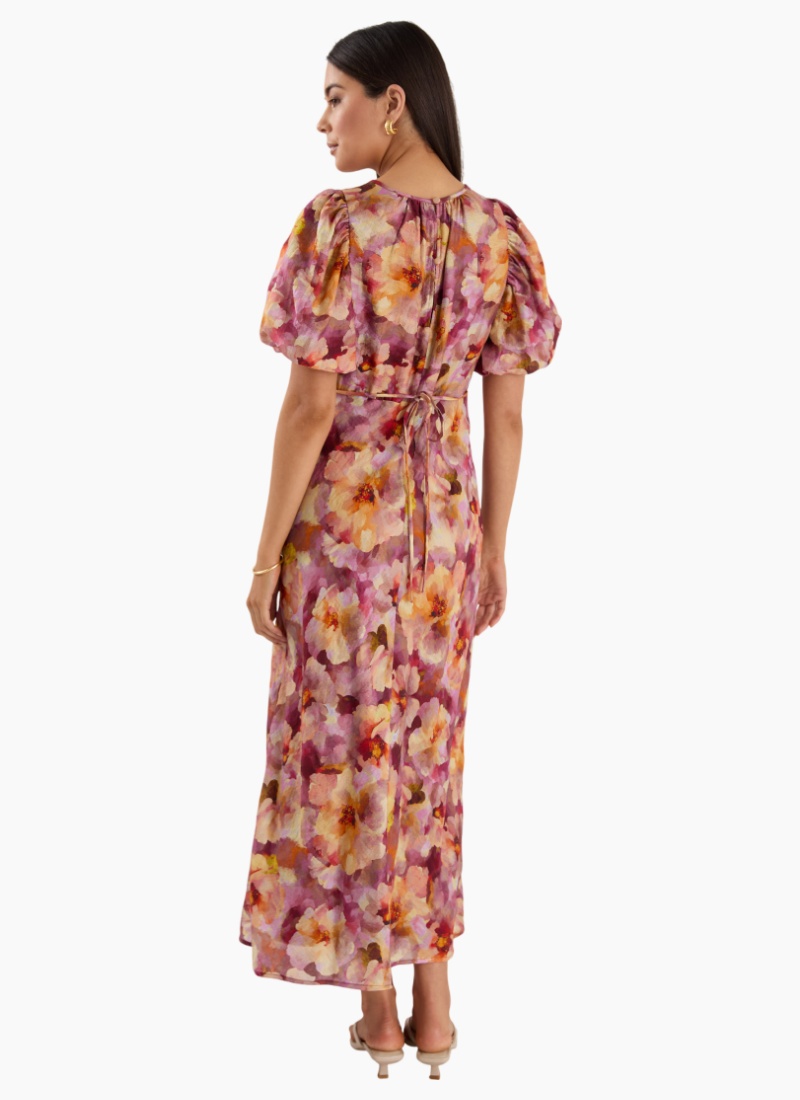 Bold yet beautifully feminine, the Exquisite dress from Georgia Mae is designed to make a statement while feeling effortlessly wearable. Cut on the bias for a flattering drape, it skims the body with ease, while puff sleeves add volume and drama in all the right places. The vivid floral print is softened by the delicate lining, making it as comfortable as it is striking.