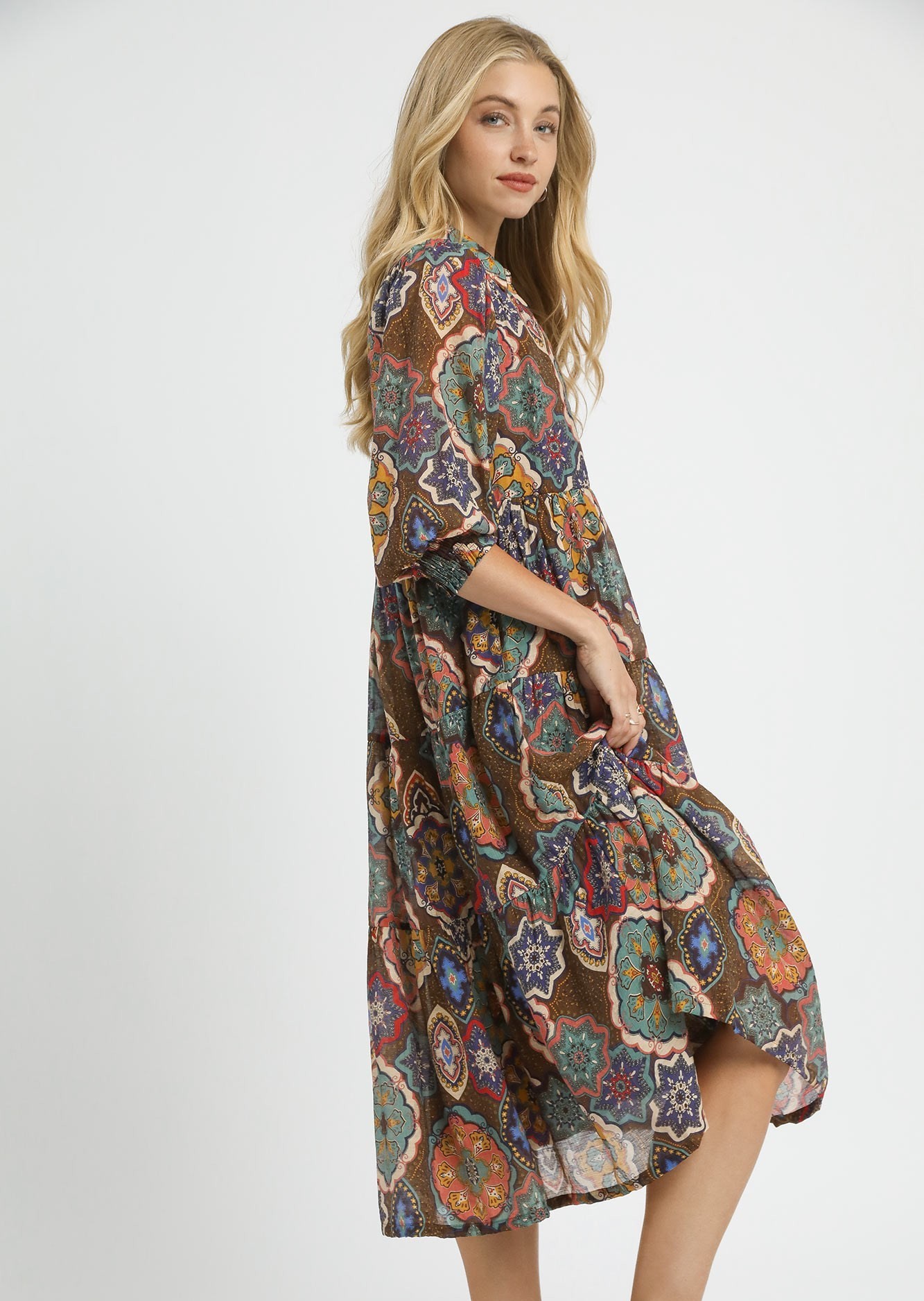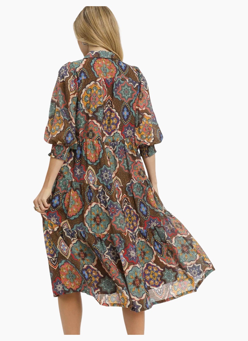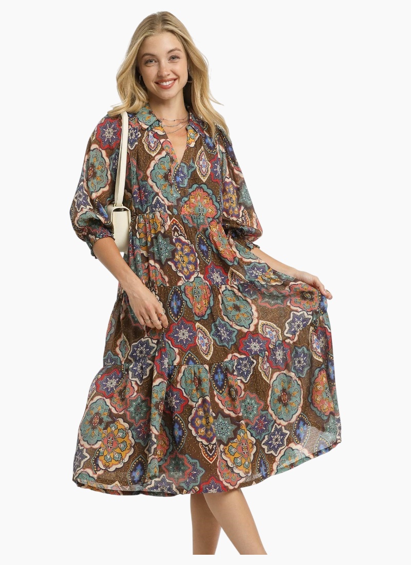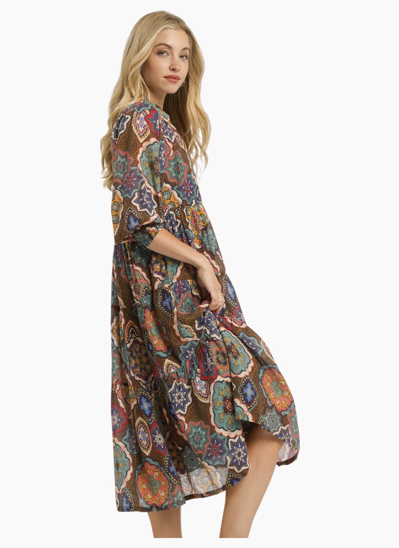 Print Tiered Midi Dress
