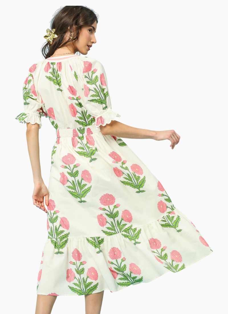 V neck collared dress with contrast binding