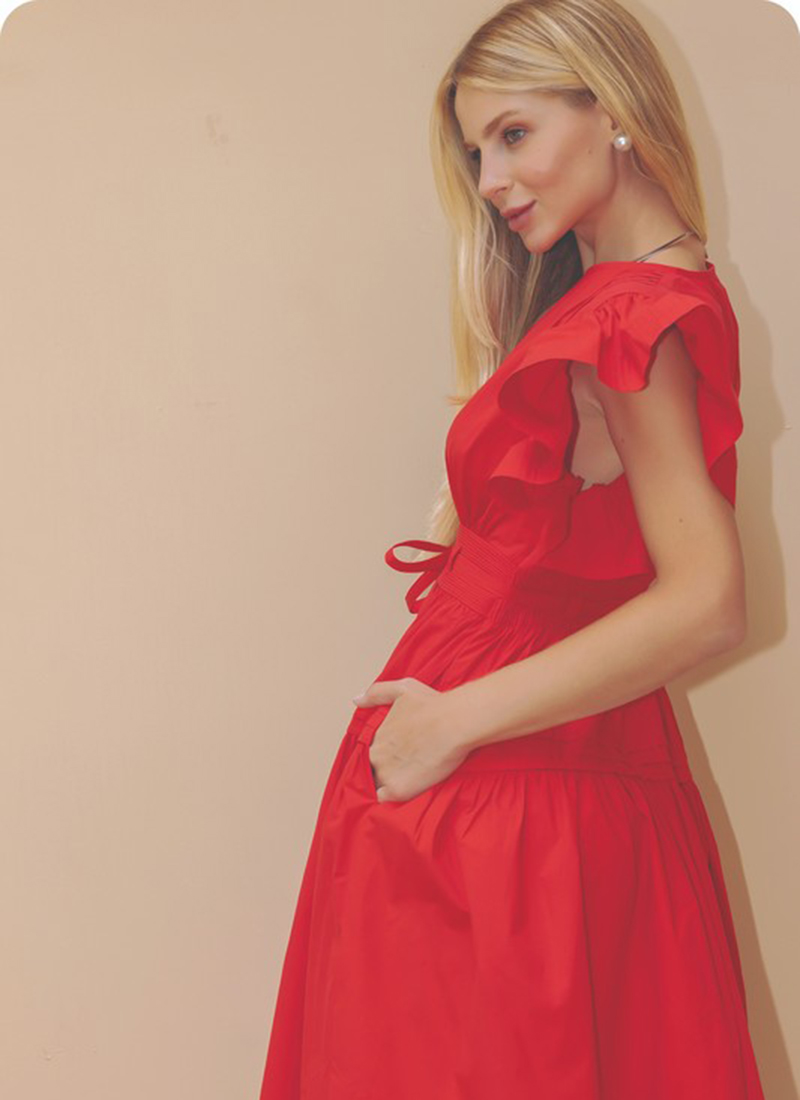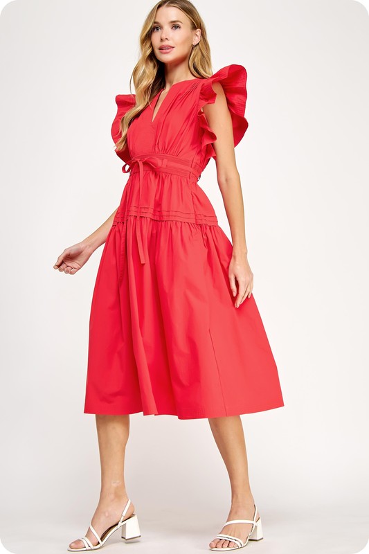 Ruffles & pintuck detail perfectly frame this midi dress cut from crisp cotton for a sunshine-ready look.