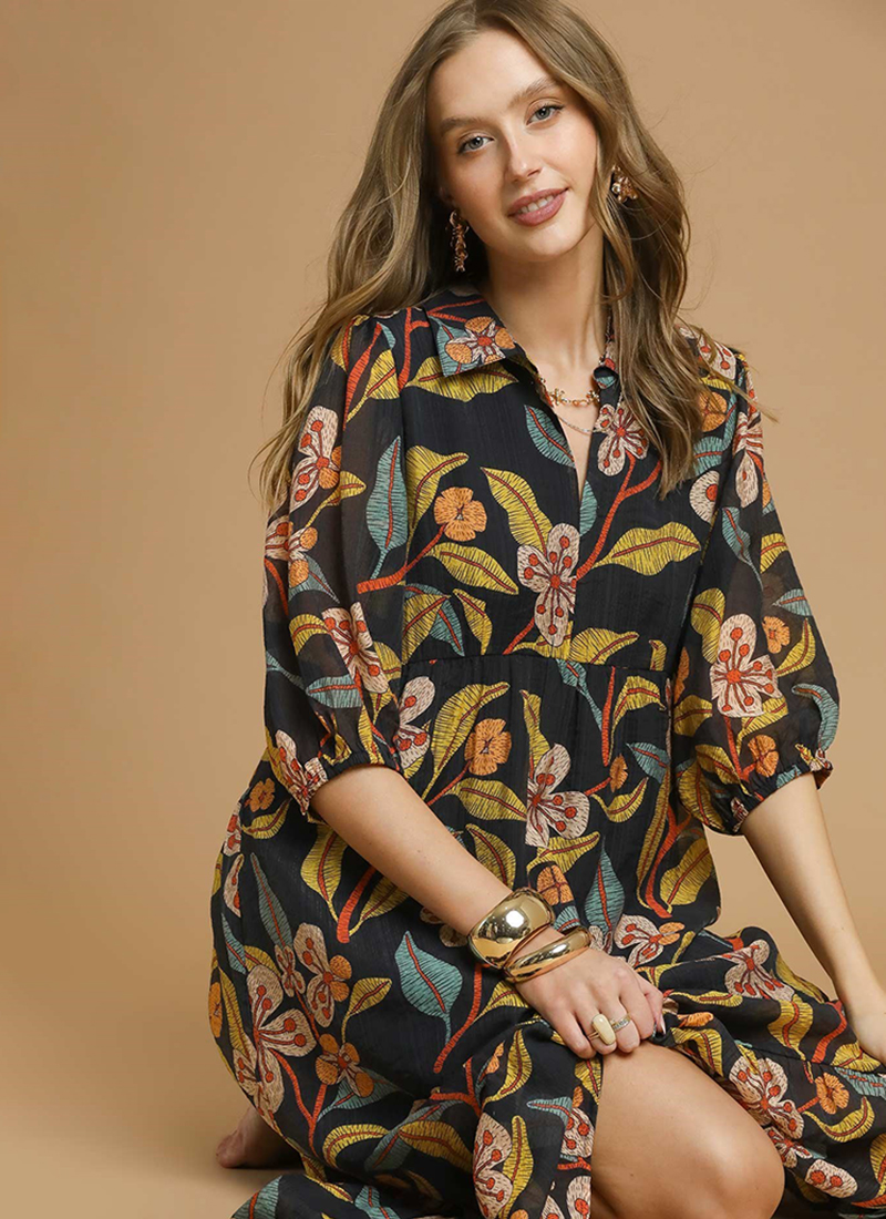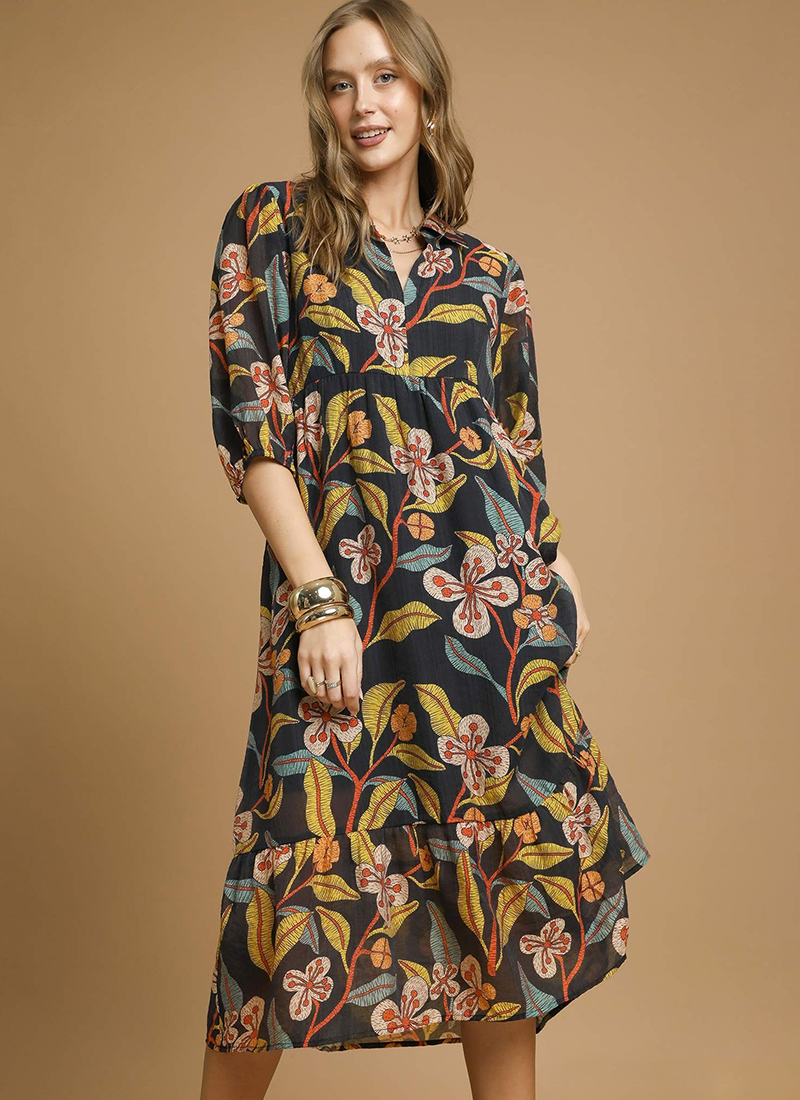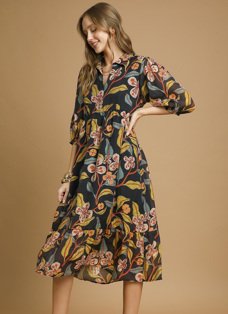Floral tiered midi dress