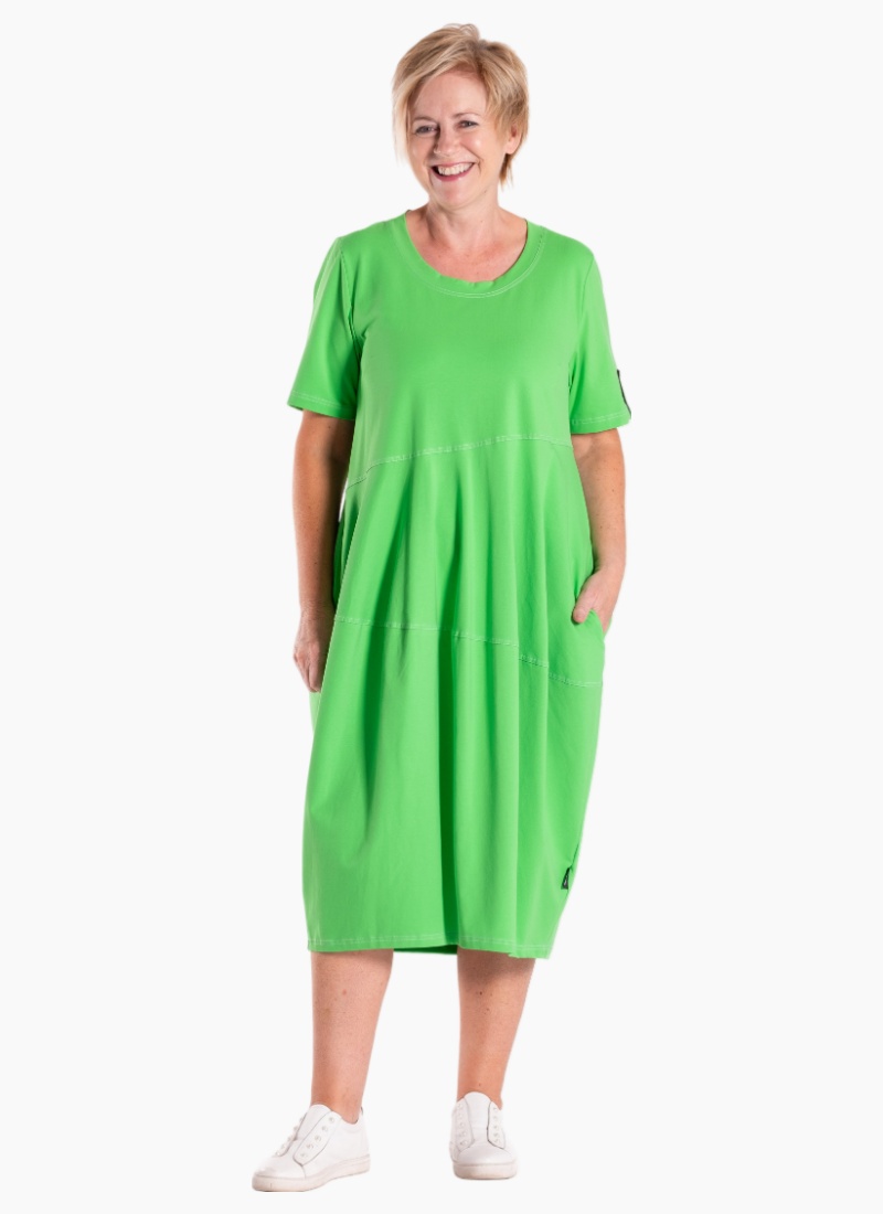- A casual Dresses piece in vivid Granny Smith Green with short sleeves, a round neckline and practical side pockets