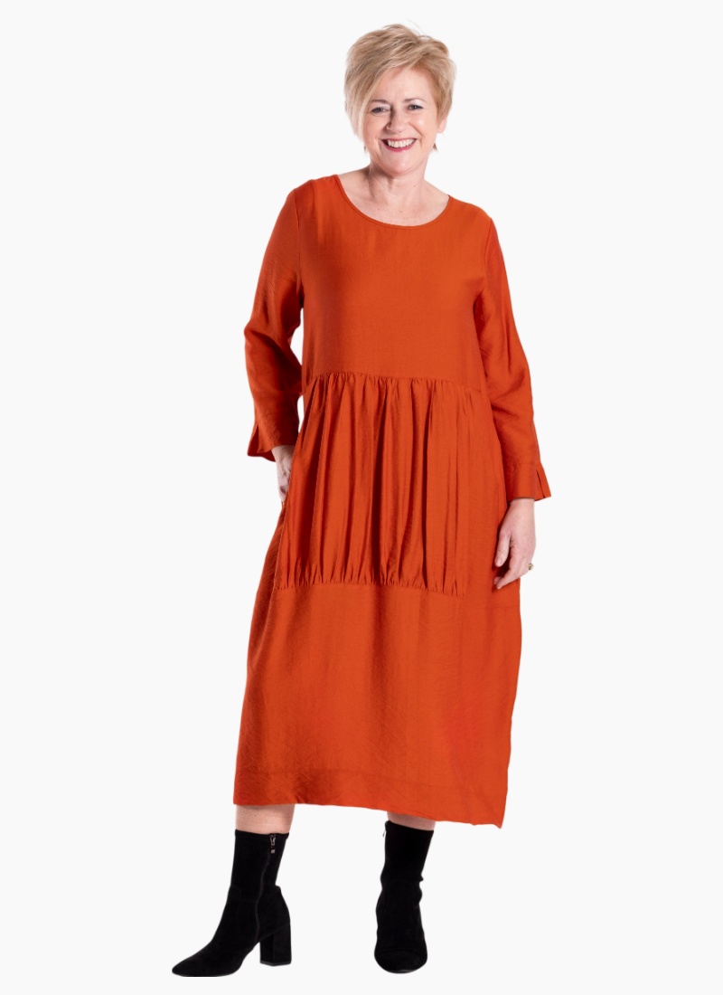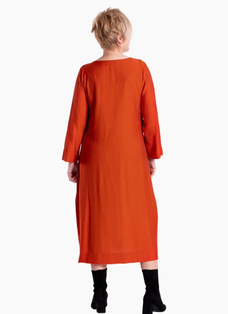 Introducing the JORDAN Dress - Spiced Flame from Jellicoe. This relaxed Casual/Day Dress in a warm burnt orange colour combines effortless style with breathable linen comfort.