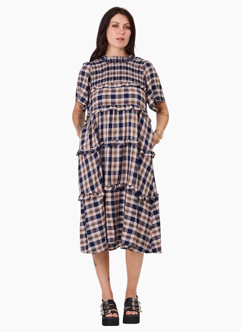 - Indigo plaid from Libertine. This relaxed, tiered Casual/Day Dress showcases a classic indigo plaid and effortless everyday charm.