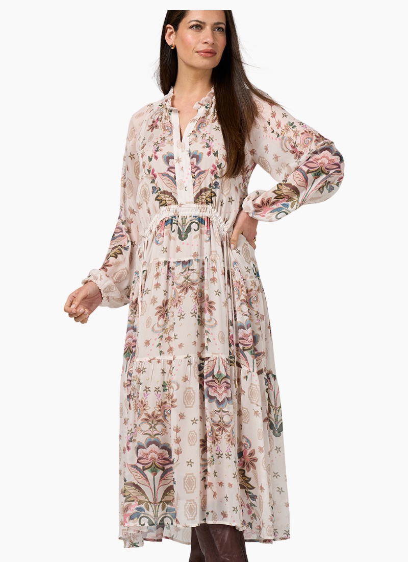 - Bone Multi from Loobies Story. This floaty, feminine dress pairs vintage-inspired florals with an effortless day-to-day silhouette.