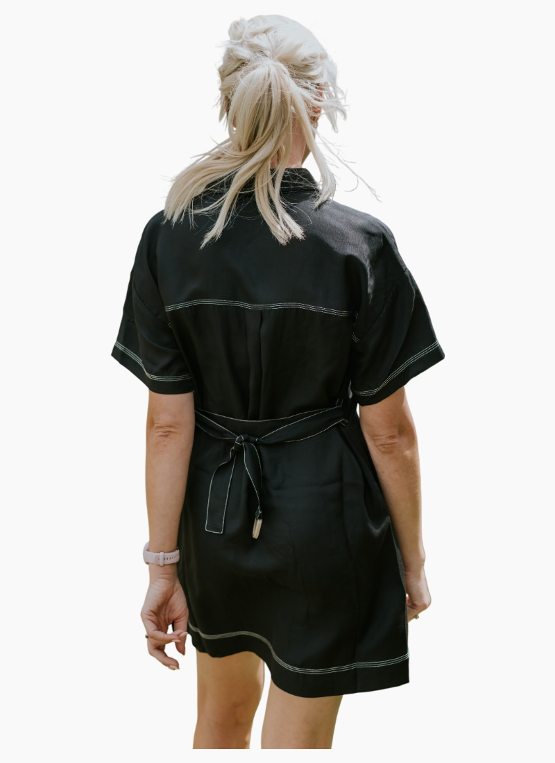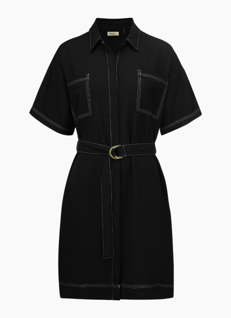 Introducing the CORA DRESS - BLACK from Moke. This shirt-style day dress offers effortless, modern charm perfect for everyday wear.