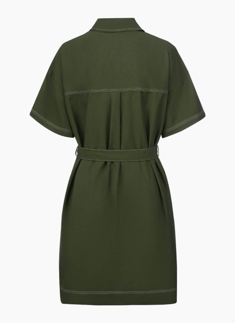 - Cut as a casual/day dress with a shirt collar and short sleeves, finished with contrast topstitching for subtle structure