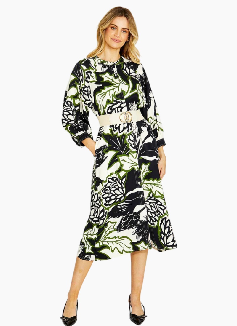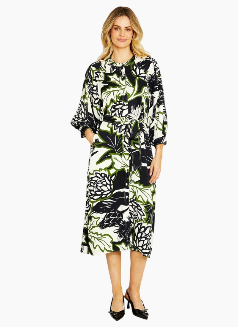 Make a bold statement with in our Nella Raglan Dress - a vibrant fusion of colour and effortless style. This midi-length dress features a refined mandarin collar and a button-down front for a touch of casual sophistication. The relaxed raglan 3/4 sleeves add comfort and ease of movement, while the self-tie waist cinches perfectly to flatter your silhouette. Thoughtful side pockets bring functionality without compromising on style. Designed for everyday elegance, this dress transitions seamlessly from day to evening. Raglan Button down front closure Midi length Shirt dress