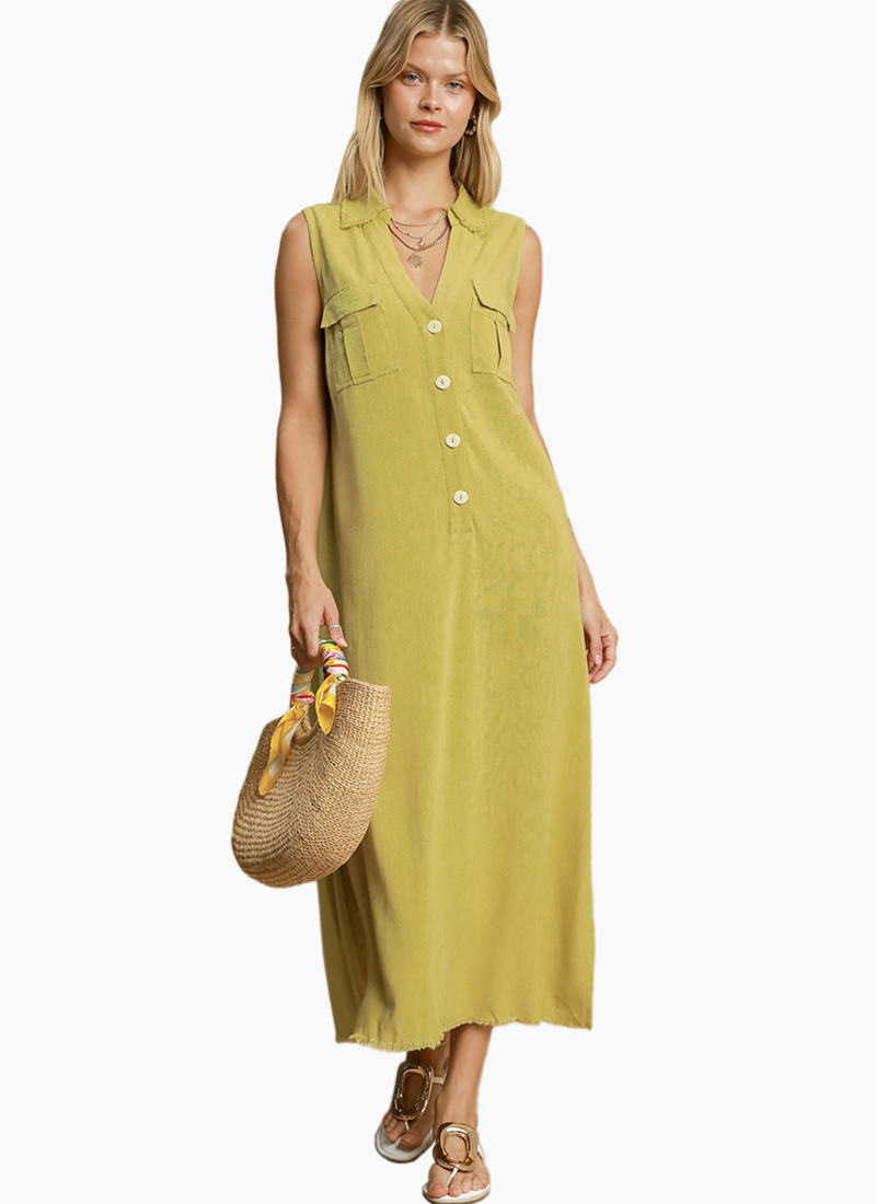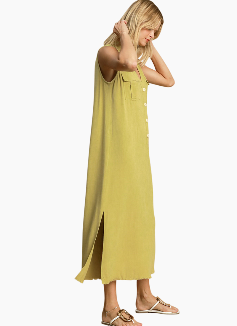 Washed linen sleeveless midi dress
