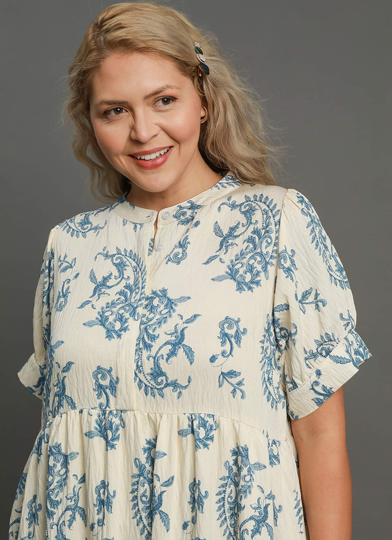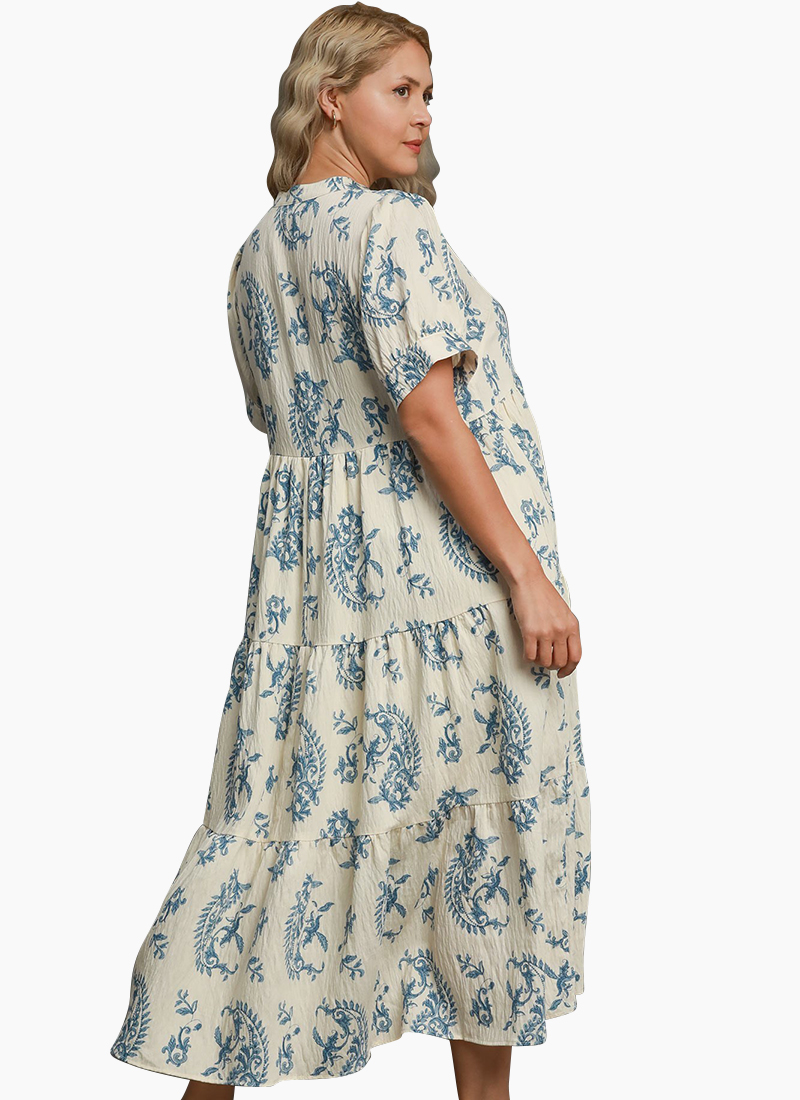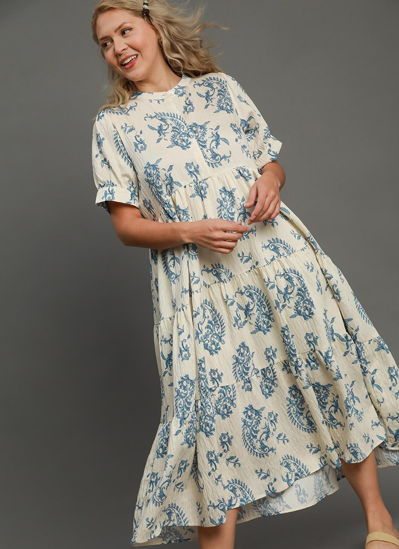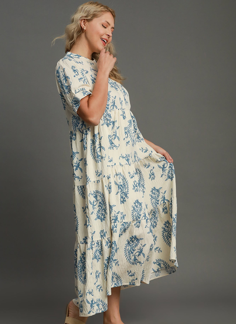 A pretty print, tiered skirt & mandarin collar makes this midi dress a great addition to your everyday wardrobe.