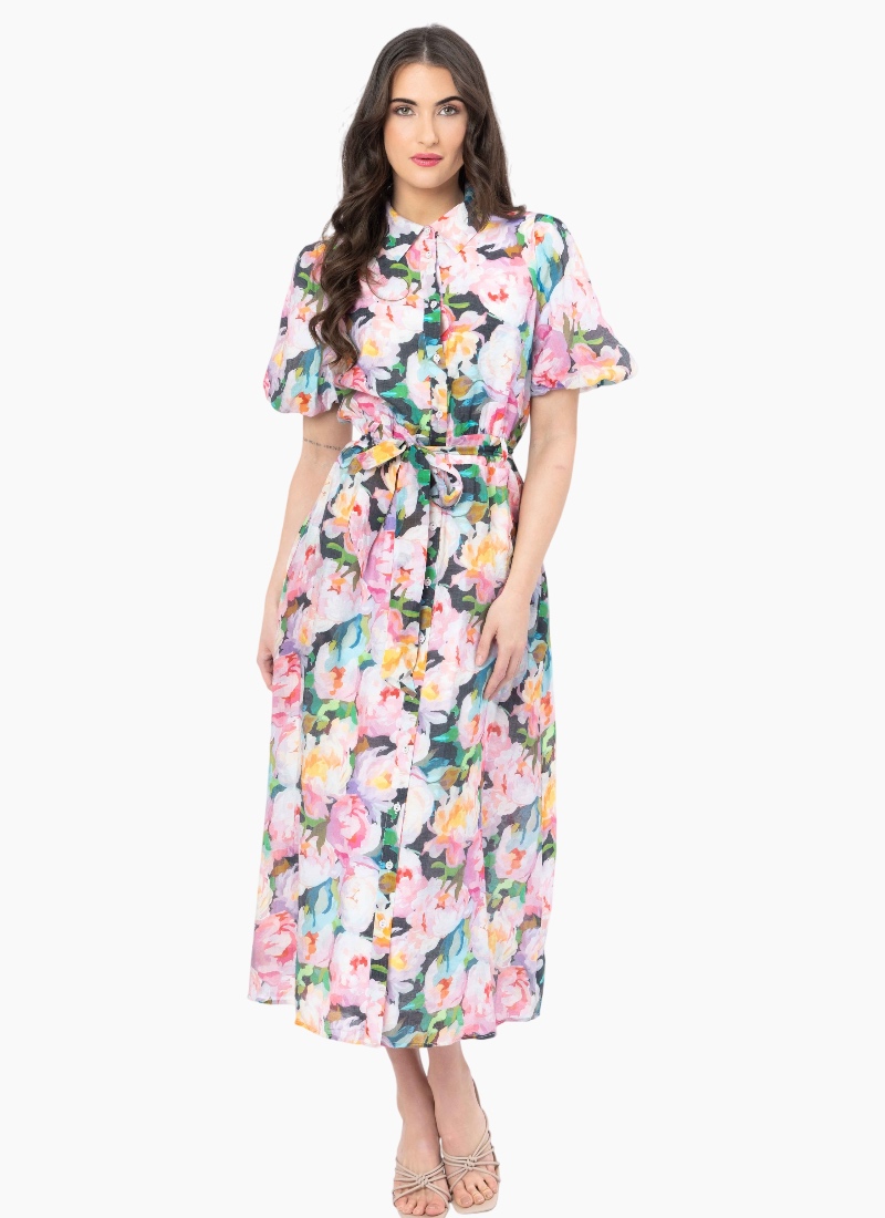 - Painterly pink multi floral print adds a fresh, feminine statement to this Casual/Day Dress