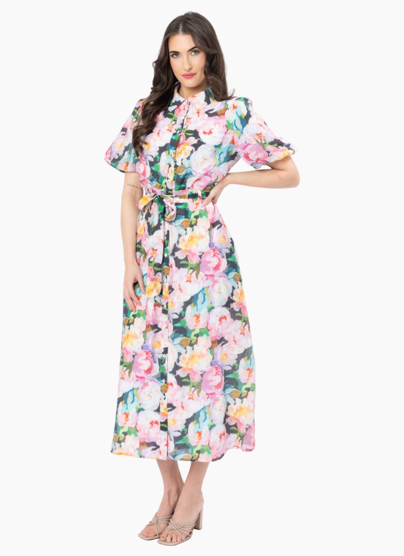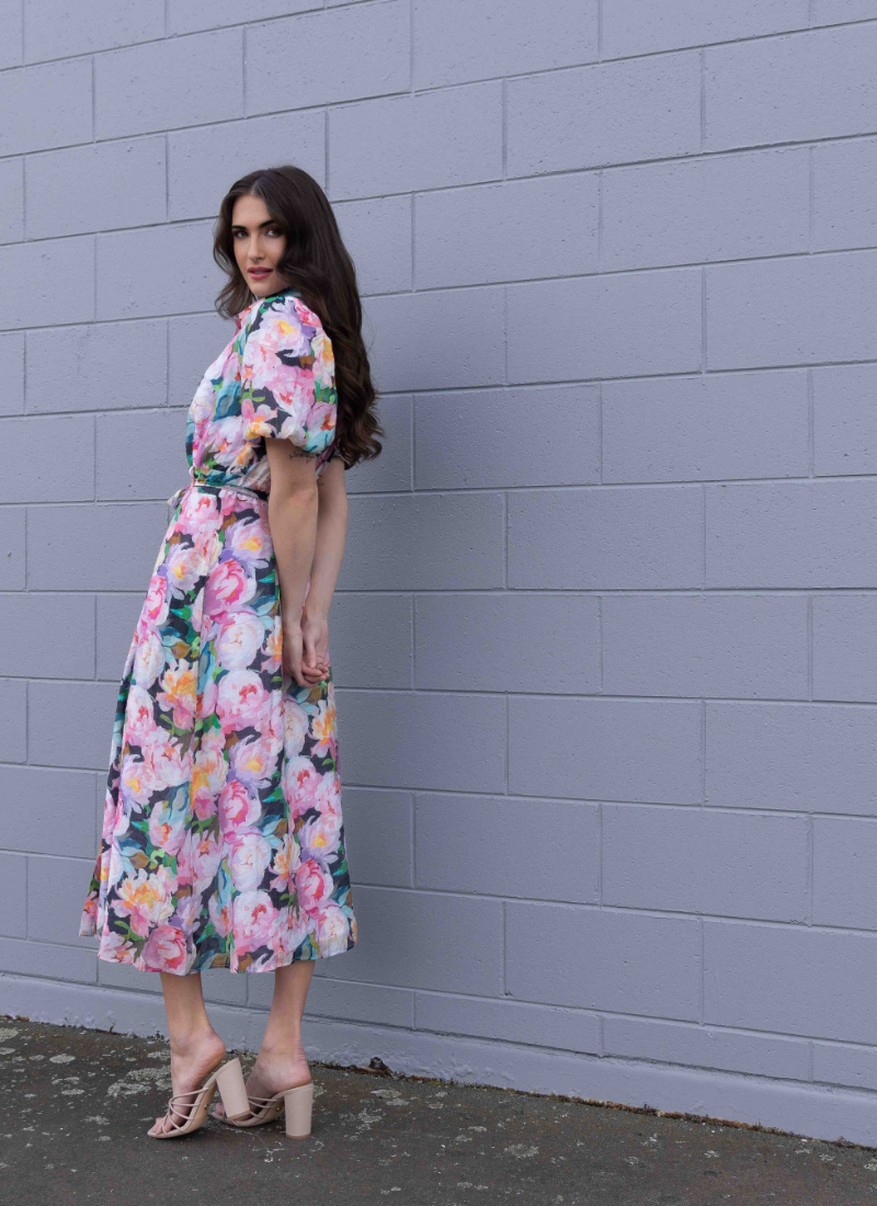 Introducing the J'Adore Dress from Seeking Lola. A romantic floral midi that brings effortless charm to your daytime wardrobe.