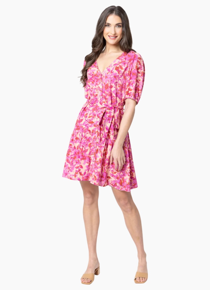 - Pink Delight from Seeking Lola. This playful, feminine dress showcases a vibrant pink floral print and easy, summer-ready movement.
