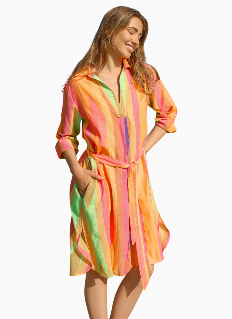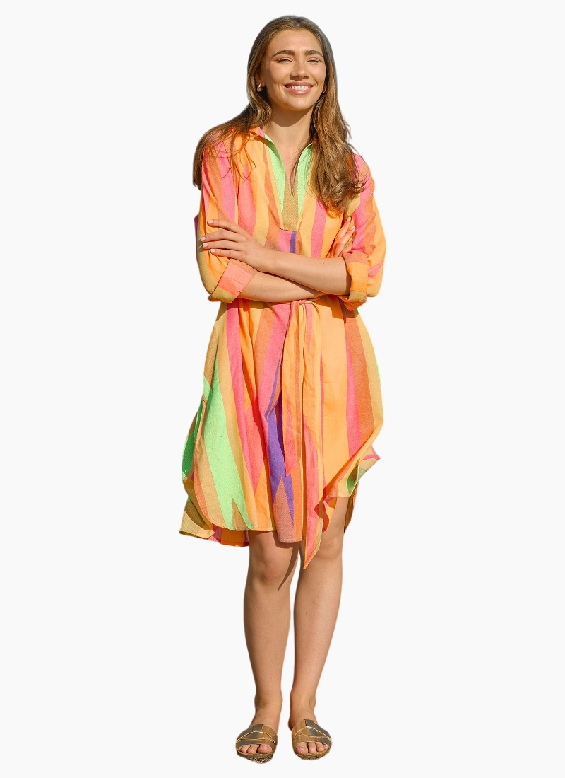 Introducing the Cayman Shirt Dress from Stella + Gemma. This breezy Casual/Day Dress brings a splash of colour to sunny days with a relaxed, wearable silhouette.