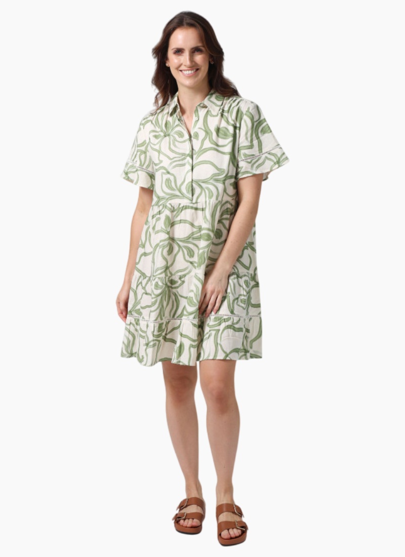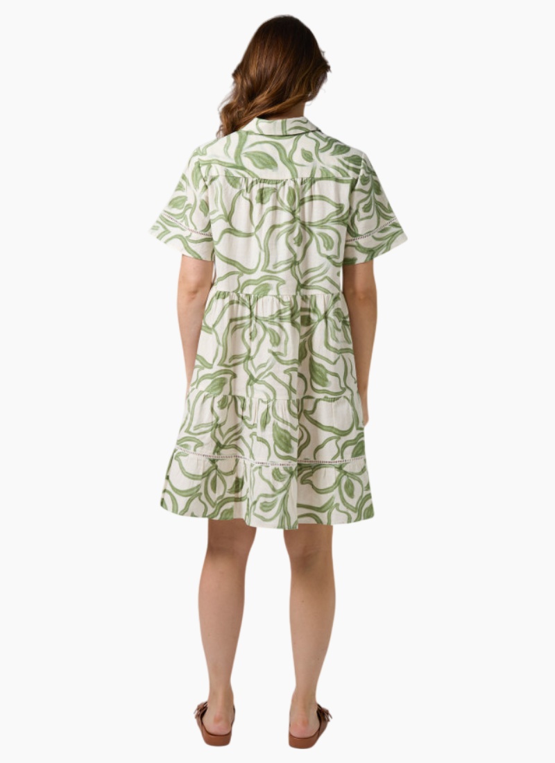 - Crafted from a breathable cotton-linen blend in a cream base with an all-over green garden print, ideal for warm-weather dressing