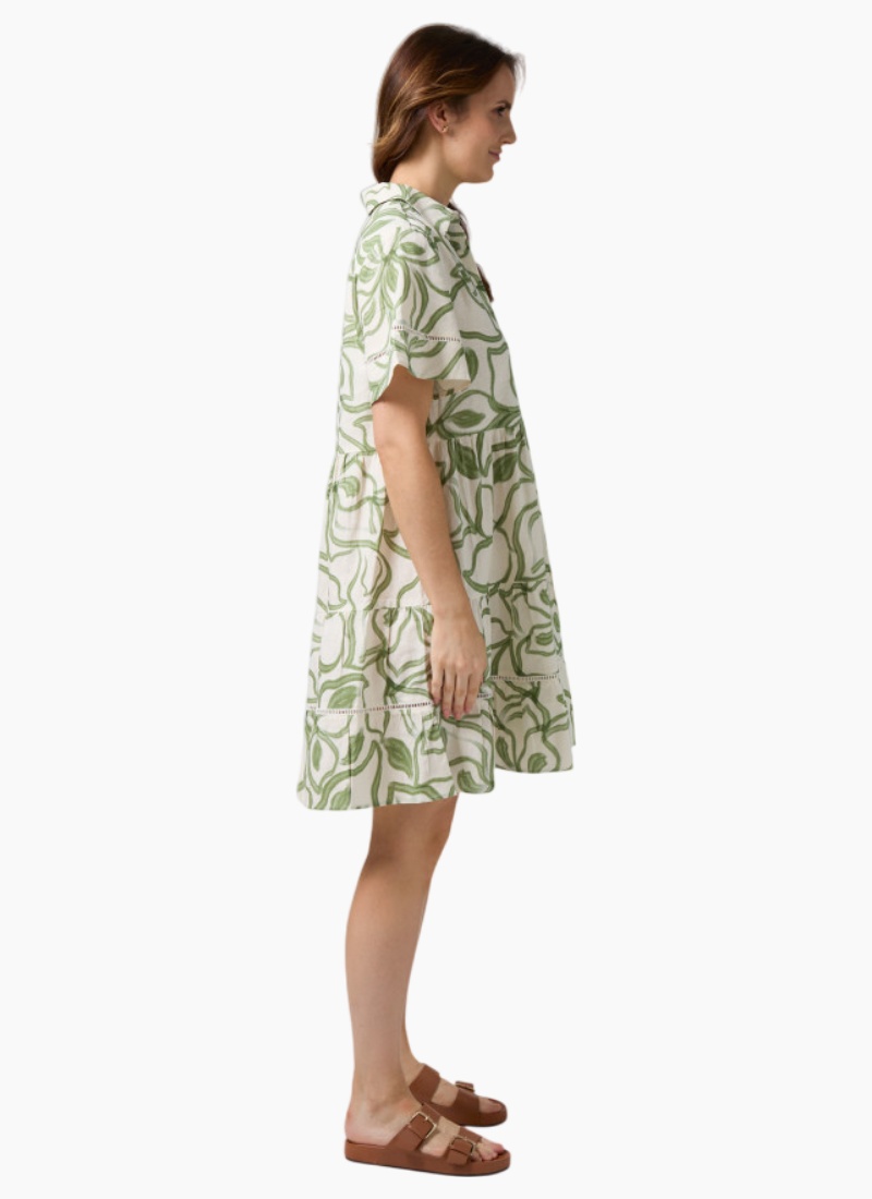 - Flowy short sleeves and a gently tiered skirt create movement and comfortable ease in this Casual/Day Dresses style