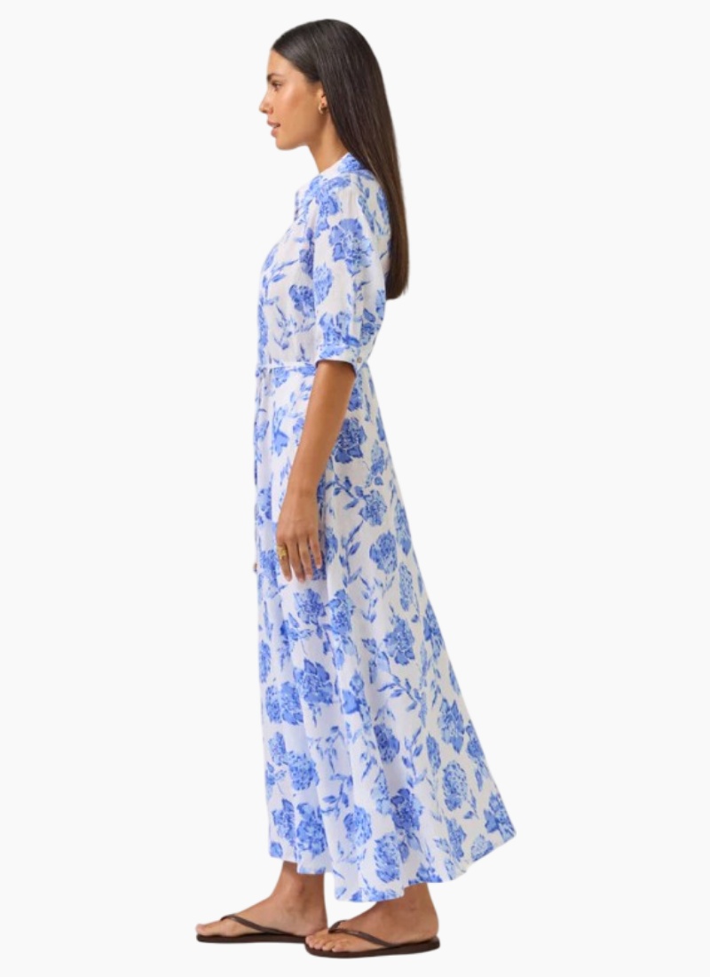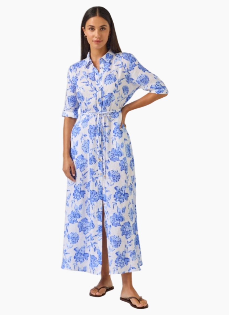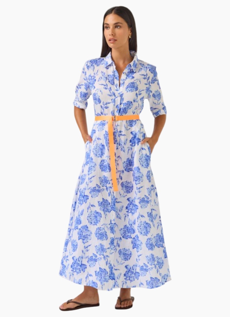 A TUESDAY must-have, this season’s iteration of the Nicola Dress silhouette is vying for top position. With her classic shirt-dress styling, beautiful blue & white print, and fun neon orange belt addition, she’s the perfect blend of timeless and modern. Dress up with heels or down with sandals; this one will take you anywhere.