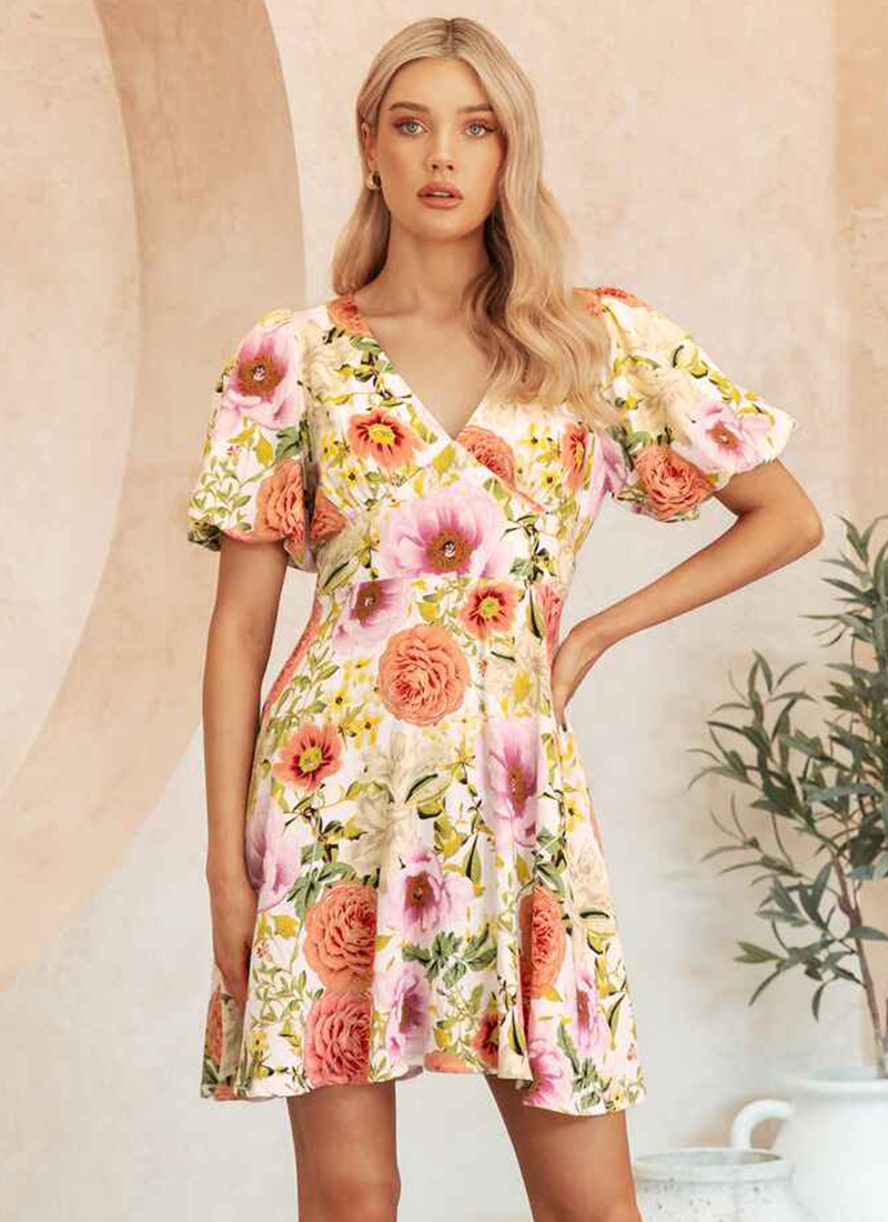 Medika Midi Dress, with V Neck & elasticated short sleeves