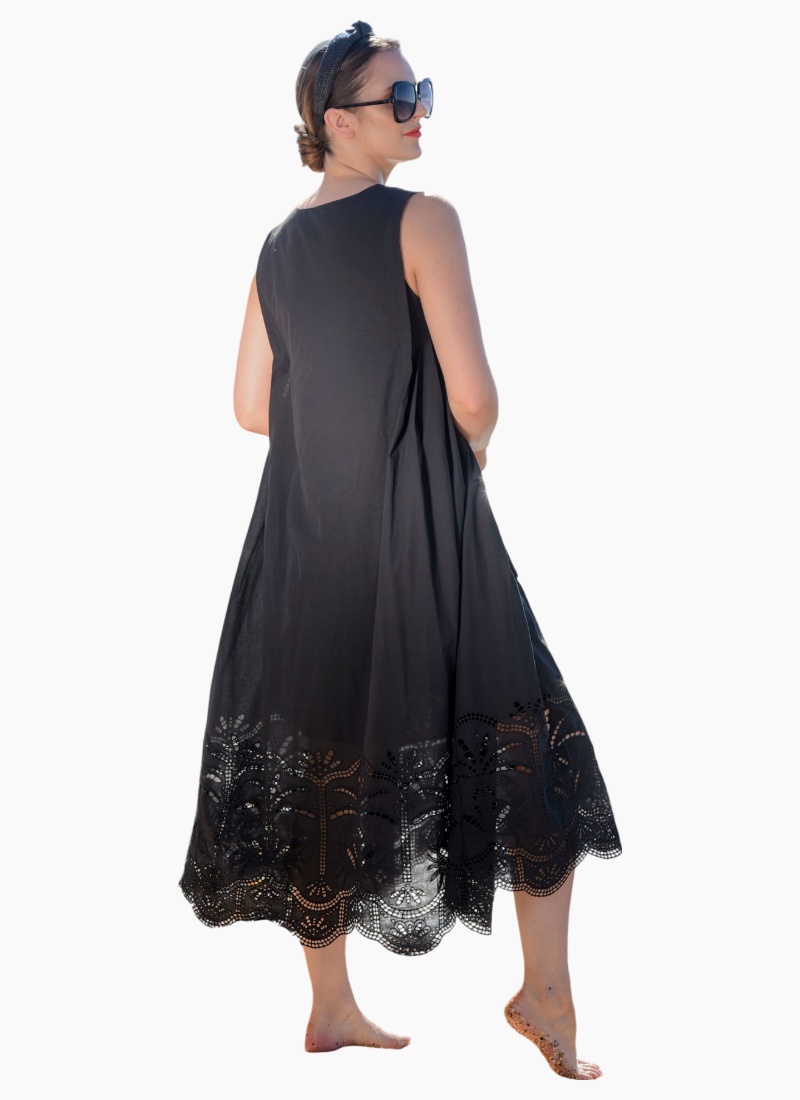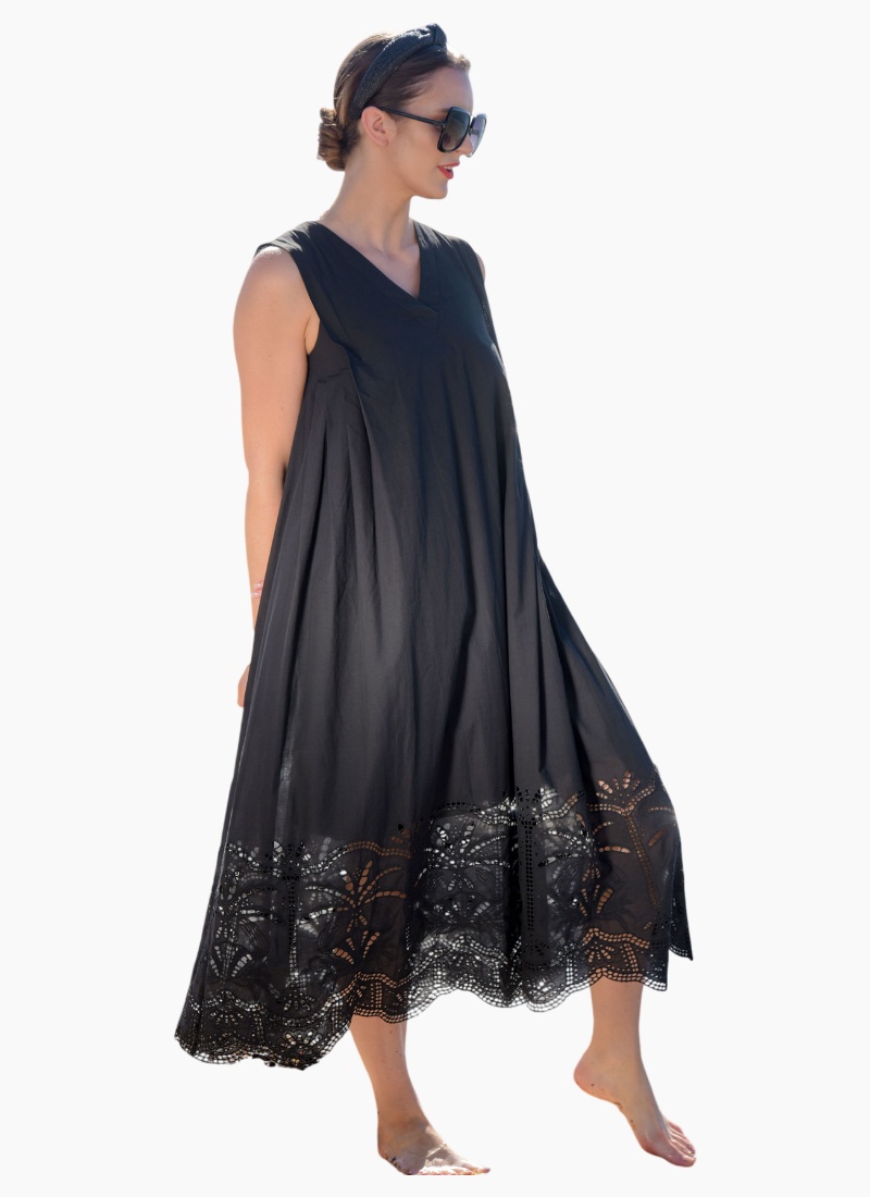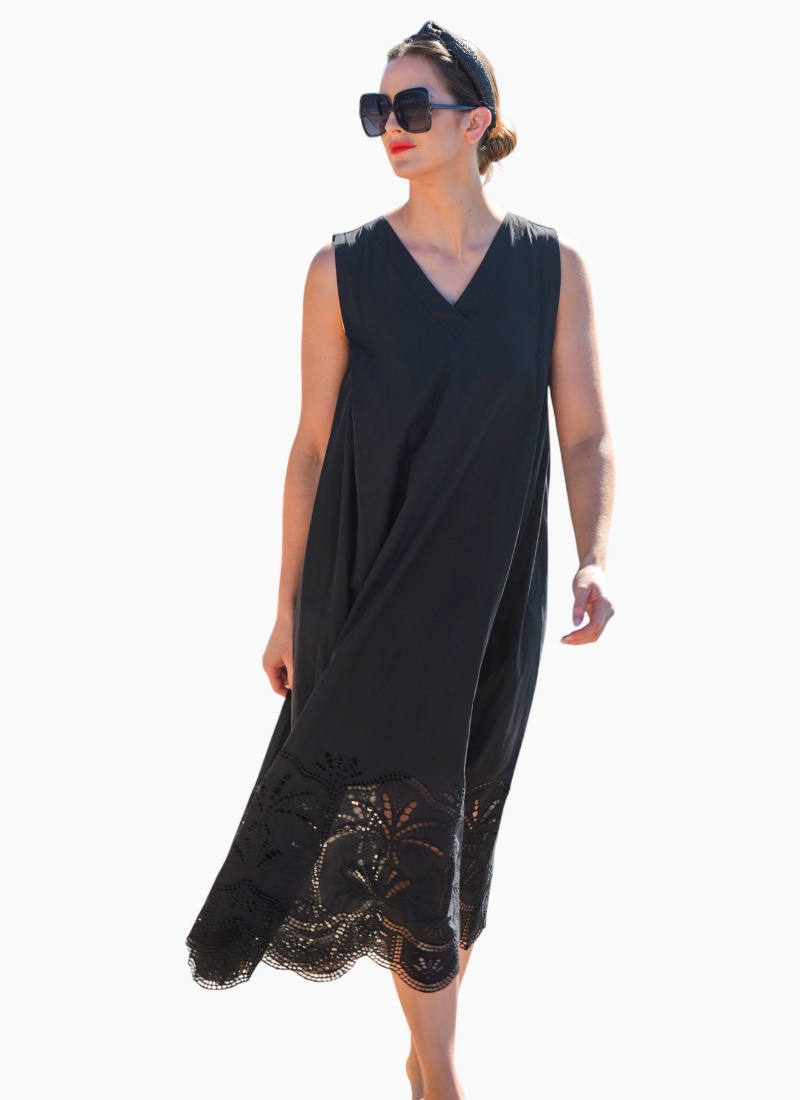Your sartorial styling solution for smart weekend dressing this summer is none other than the ‘Bottom Heavy’ dress. Showcasing tropical inspired broderie anglaise in the ‘Feeling Crabulous’ cotton, this dress sports an A-line silhouette with pleating from the under-arm creating whimsical movement as well as comfort. The perfect ‘throw-on’ dress for hot weather when you want to look your best. • Swing shape • V-neckline • Crab and palm inspired broderie anglaise • Undearm tuck pleats • Lined CT5795-03BLK