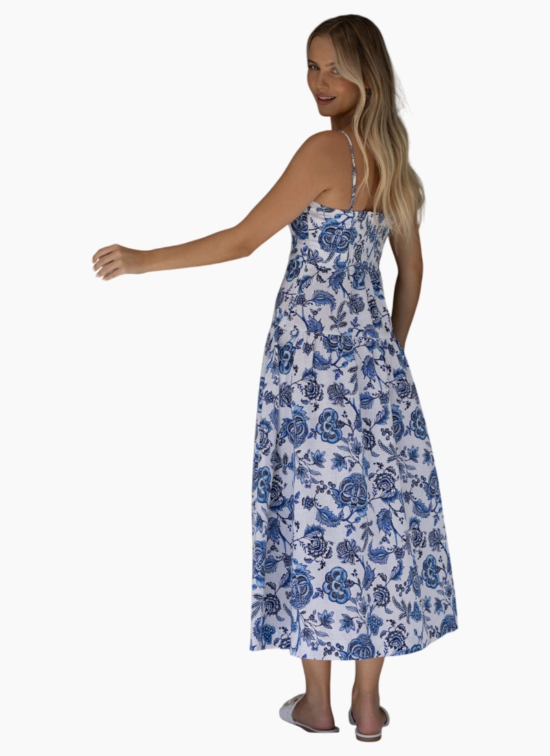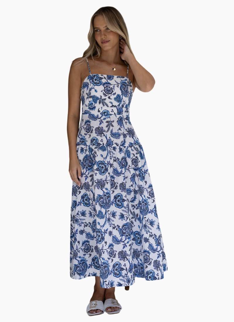 Get ready for loads of compliments – in your summer Wow dress! This stunning dress offers either fancy or casual depending on where you need to be. Celine offers a stunning fitted bodice and waistline, finished off with a beautiful flowy skirt. Designed for event dressing, pair her with a Slide or your fav heel for an effortless chic look.Stunning summer maxi dress in our exclusive Humidity print. Beautifully fitted bodice and waistline. Elastic shirred panel at back provides added comfort and flexibility Adjustable shoulder straps. Invisible side zipper. Drop seam skirt with gathering at lower panel creating a flowy fit. Lightweight, Linen & Ramie cotton blend - sustainable fabric. Sits just above ankle on average height True to size - fitted at bust through to hip, shirring allows for a comfortable fit