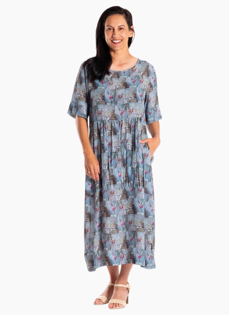 - Still Life from Jellicoe. A relaxed, ankle-length maxi with a painterly still-life floral print in a soft blue colour.