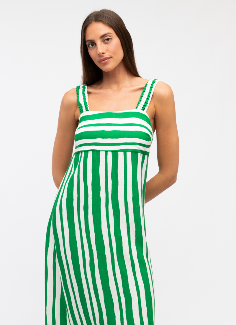 Introducing the Green Stripe Maxi dress from Label of Love. This breezy maxi is a fresh addition to your Dresses edit, showcasing bold green and white stripes in a relaxed, sun-ready silhouette.