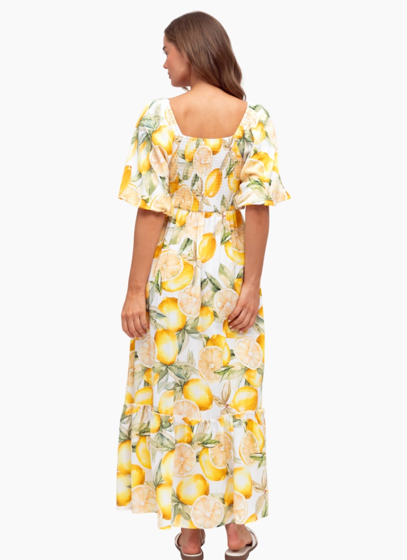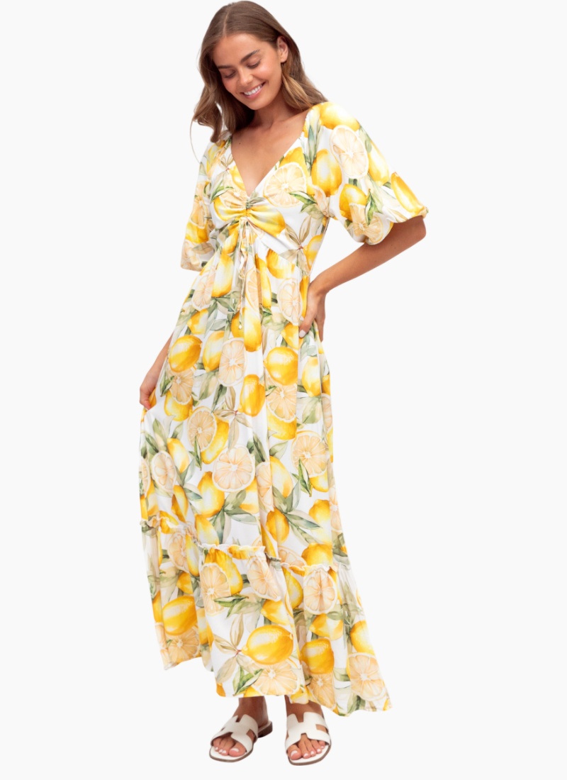 Introducing the Lemon Maxi Dress from Label of Love. This breezy, sun-ready maxi dress brings a playful lemon print to your summer wardrobe.
