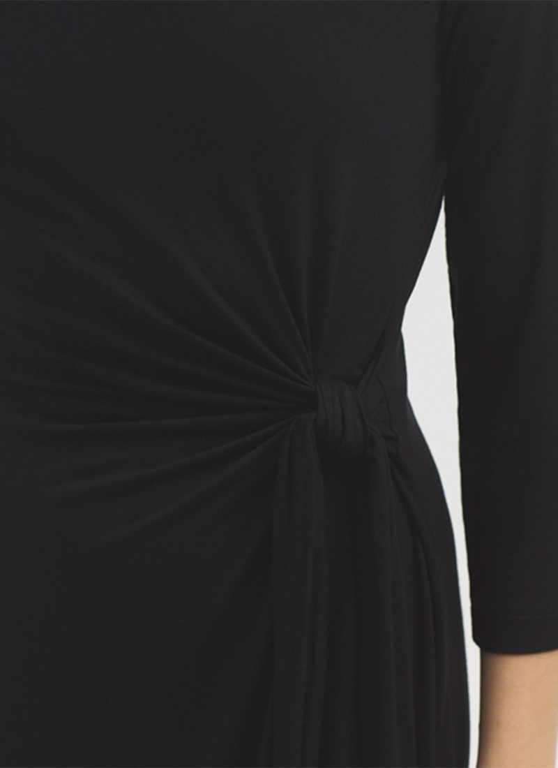 Viscose midi dress. Round neck. 3/4 sleeves. Knot detailing on waist.
