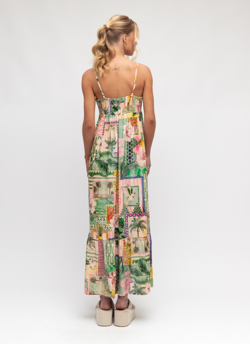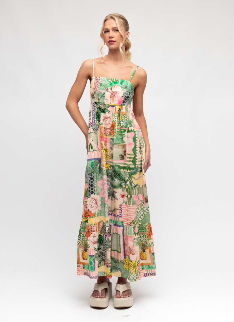 Introducing the Sao Paulo Maxi Dress from Paper Heart. A breezy maxi that brings sunlit energy to your wardrobe with its tropical patchwork print.