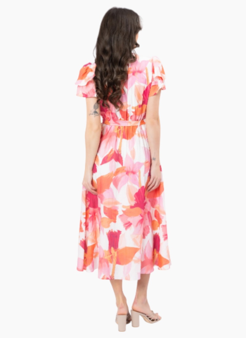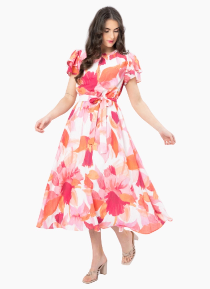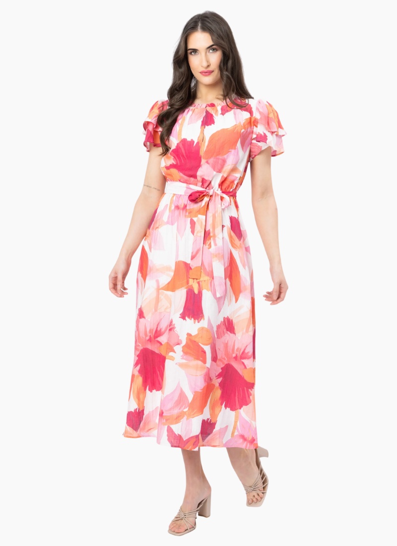 Introducing the Coastal Maxi Dress from Seeking Lola. A breezy maxi-length dress in lively pink and coral blooms, crafted to lift your summer wardrobe with effortless charm.