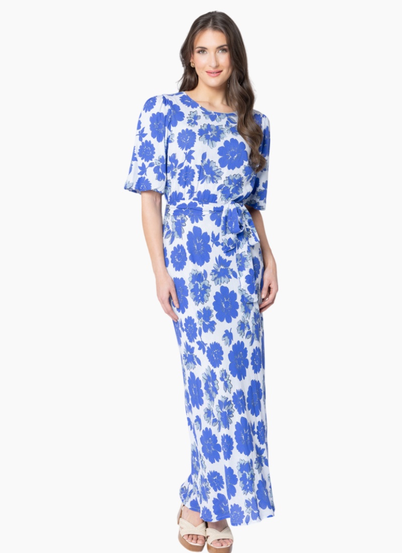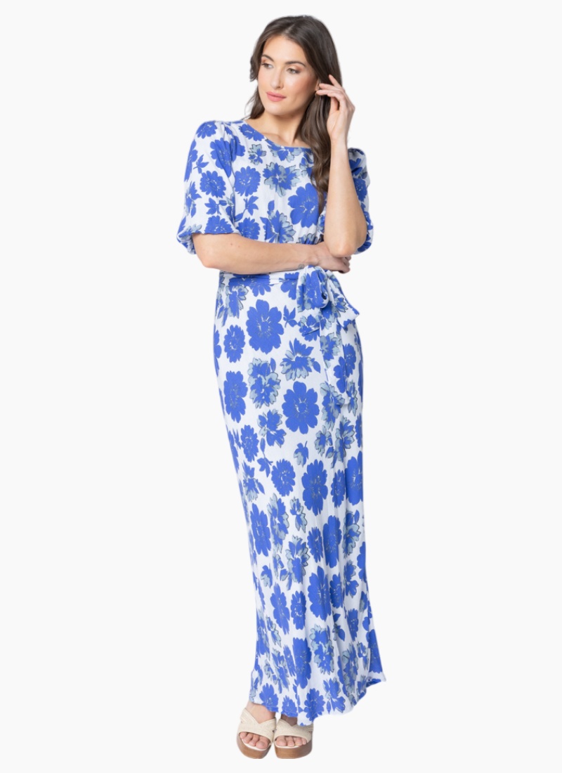 Step into elegance with, stunning addition to your wardrobe that effortlessly combines style and comfort.This dress features a classic round neck and charming puff sleeves. The dress is fully lined for added comfort and quality, ensuring it drapes beautifully against your skin. The waist tie allows for a customizable fit, accentuating your waist while providing a chic, polished look. An invisible zip entry at the back ensures easy wear, while the delicate keyhole detail at the back neck adds a touch of sophistication. 100% Cotton