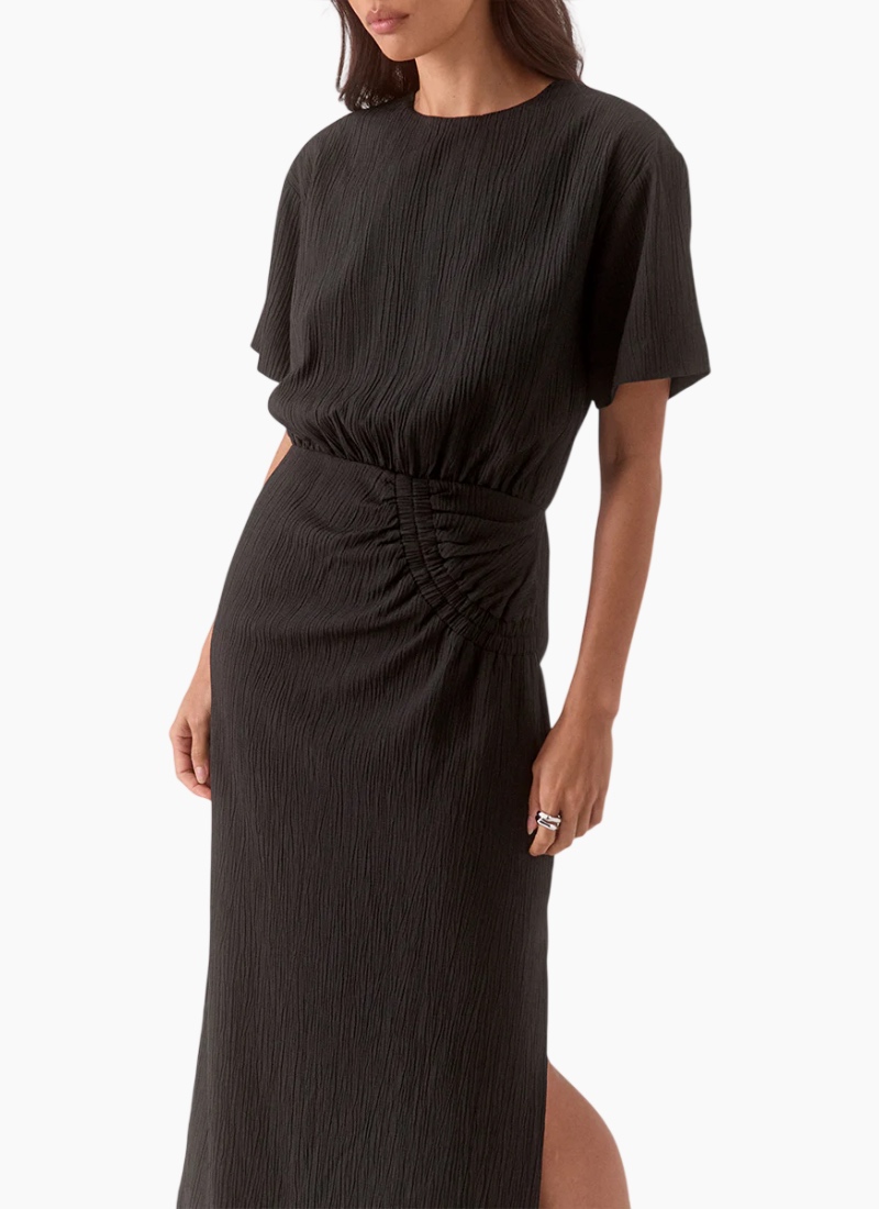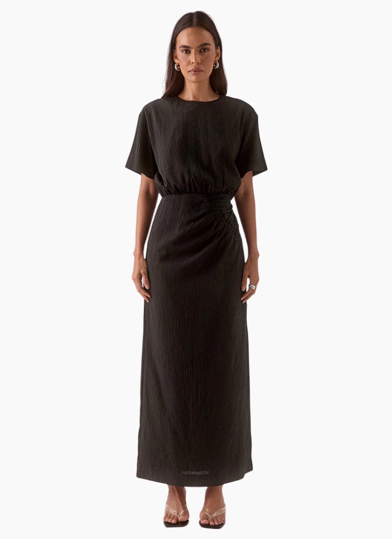 - Black from SOVERE. This refined maxi dress pairs effortless comfort with sculpted simplicity.