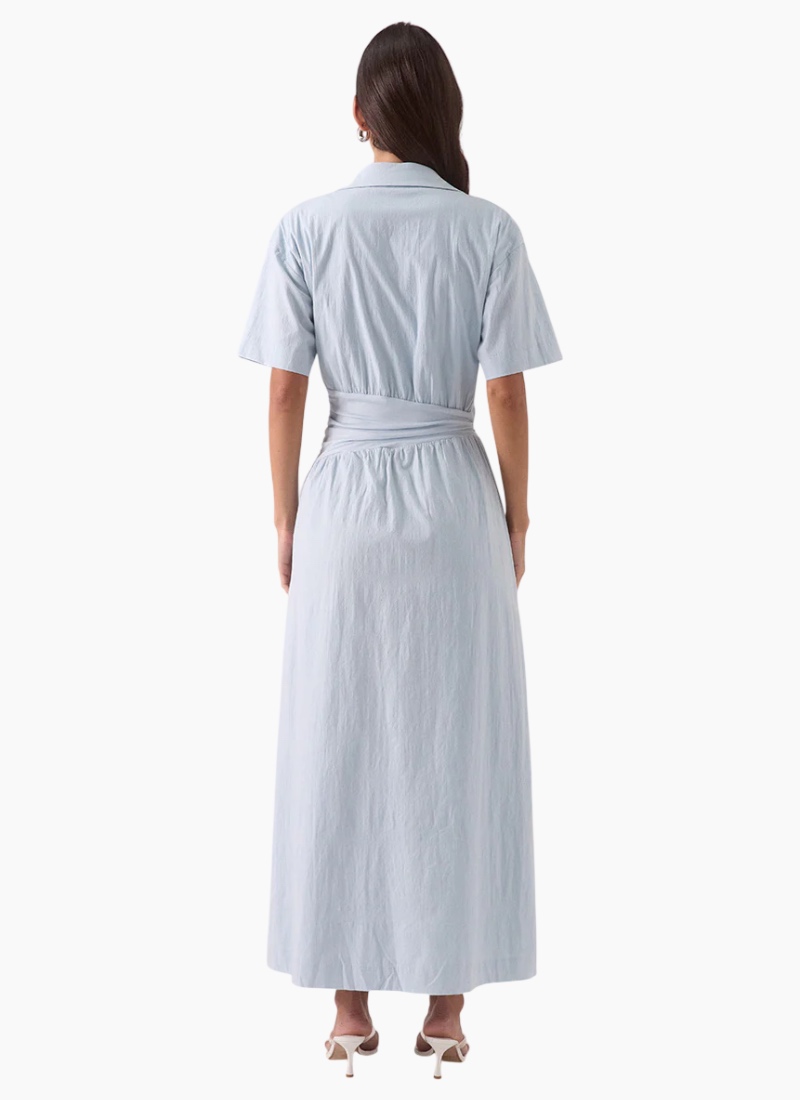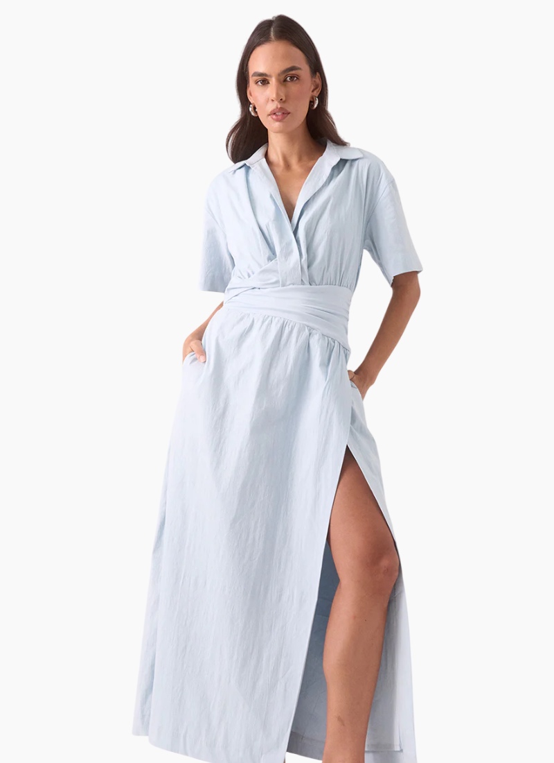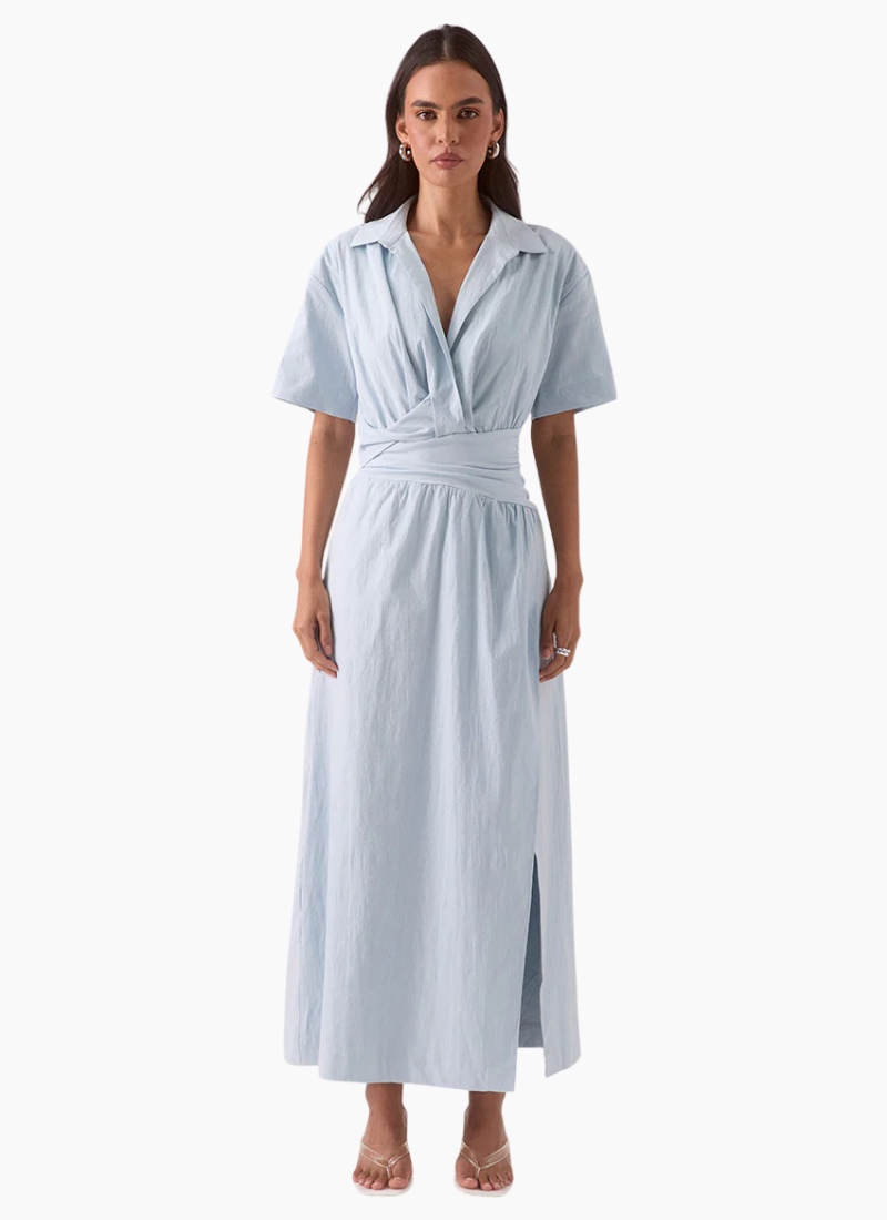 - Vista Blue from SOVERE. This effortless maxi dress blends clean tailoring with a soft, summery colour for timeless appeal.