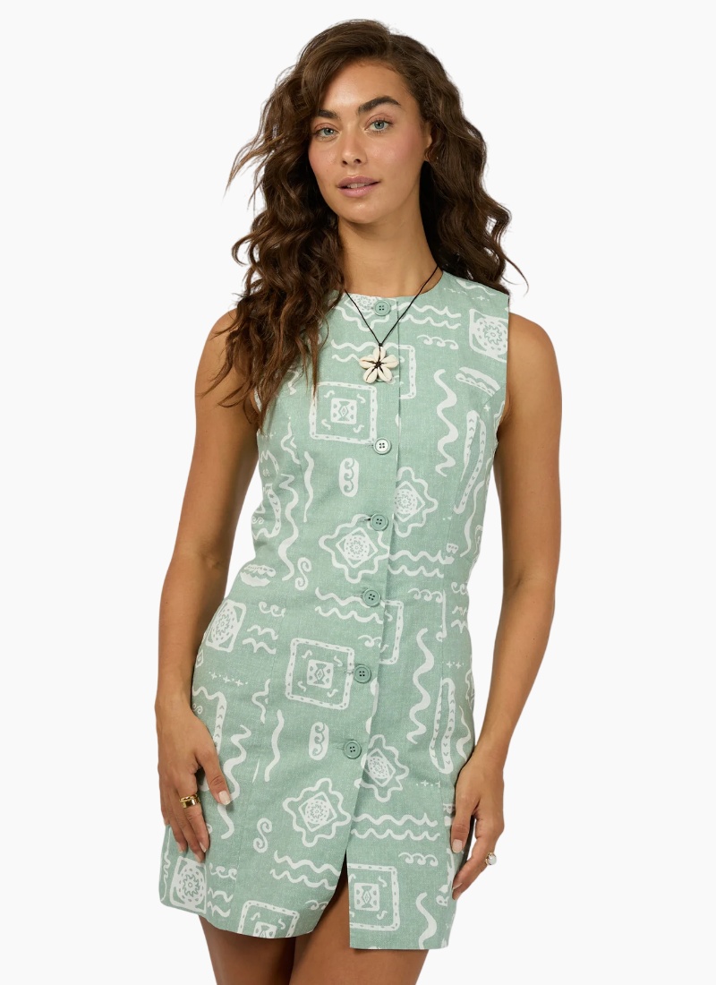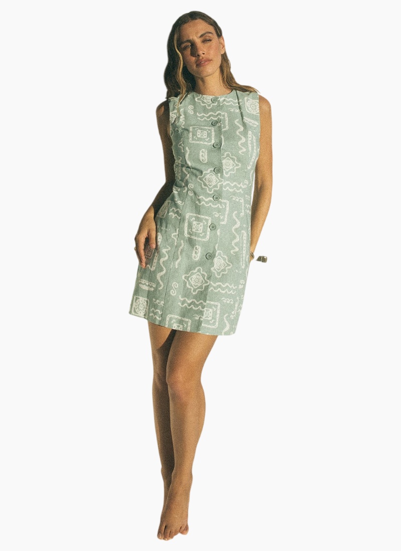 Introducing the Lucia Mini Dress Sage from All About Eve. A breezy linen mini that captures relaxed coastal charm and effortless summer style.