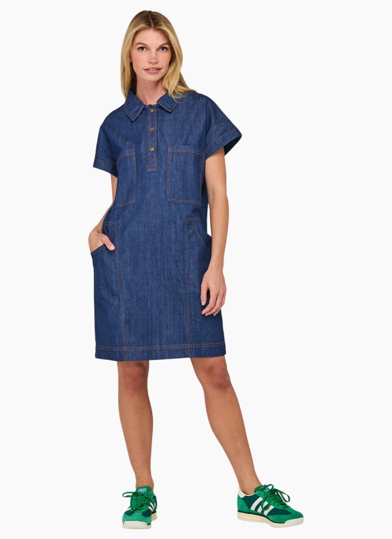 Introducing the Fumiko Dress from Boom Shankar. This easygoing denim piece blends everyday comfort with considered tailoring for a relaxed, modern silhouette.