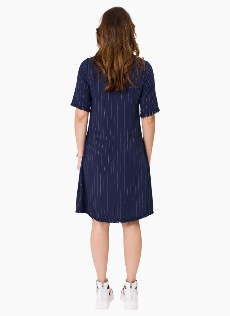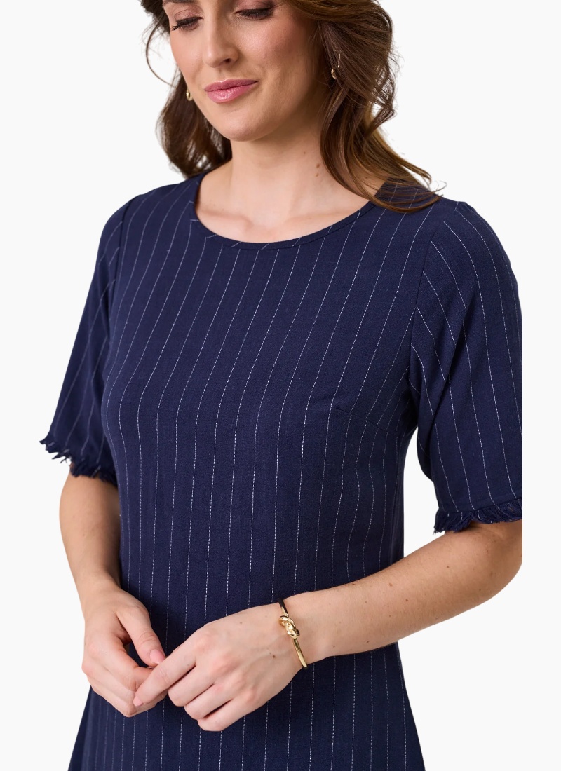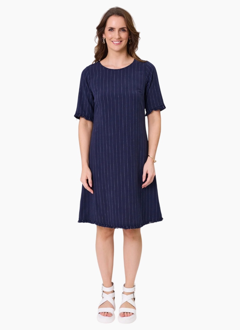 - Navy Stripe from Lemon Tree. This timeless shift dress pairs breathable linen with crisp vertical stripes for a refined everyday look.
