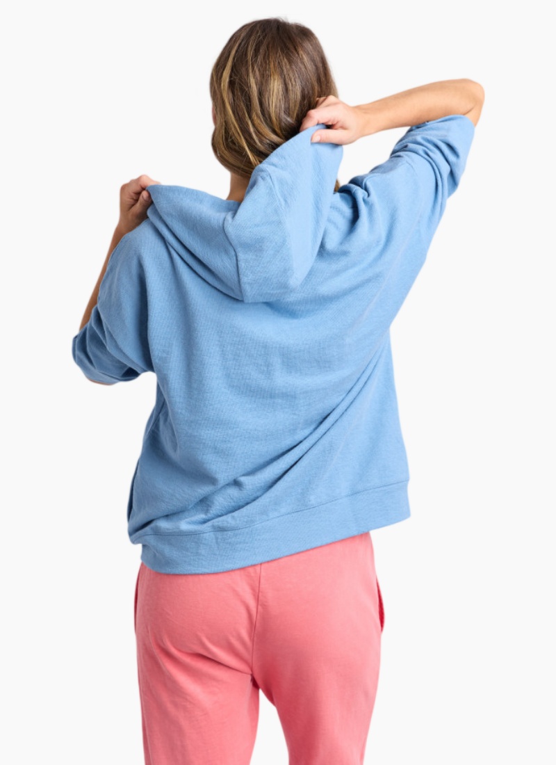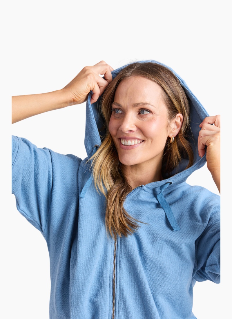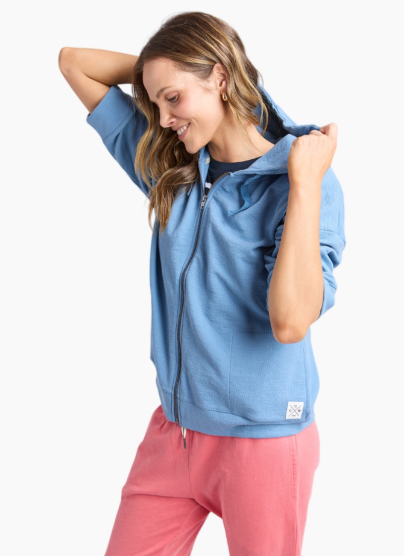 Introducing the Beachy Hoodie from Elm. A light, coastal-inspired zip-up in a soft cotton blend that brings relaxed polish to your everyday wardrobe.