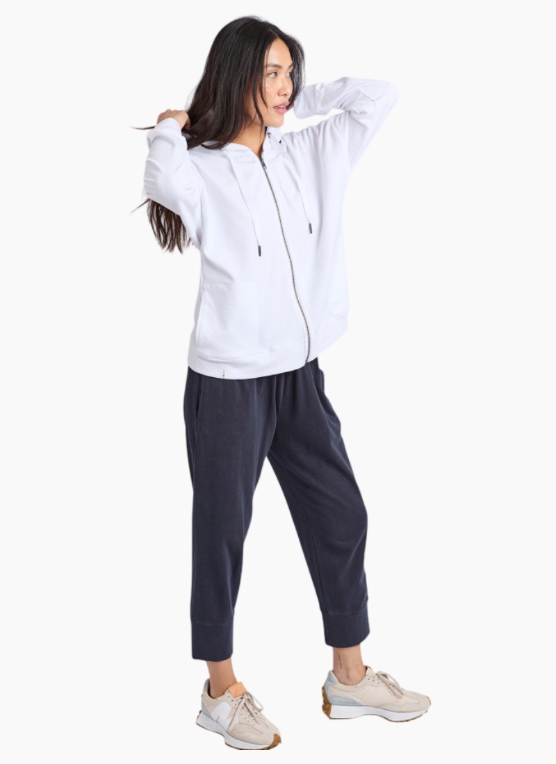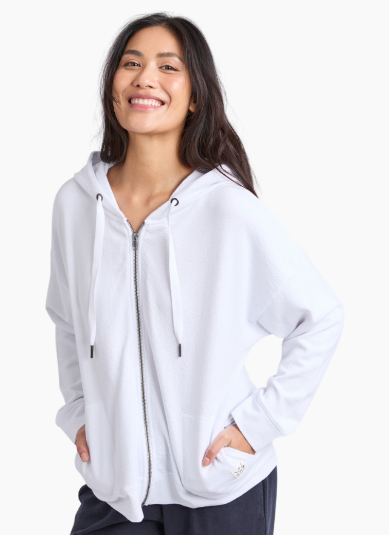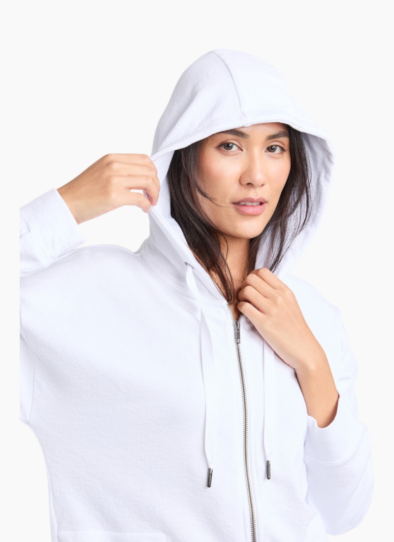 - Long Sleeve from Elm. A crisp white zip-up hoodie crafted for relaxed, everyday ease.
