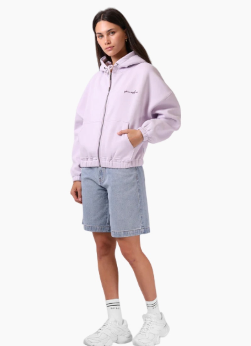 - Perfect for weekend styling or laidback city looks — pairs beautifully with denim or activewear in the same lilac colour