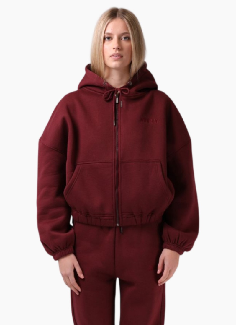 - The rich red wine colour pairs beautifully with denim or matching joggers for a coordinated set