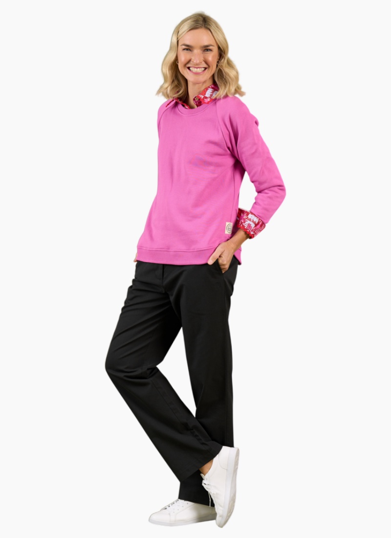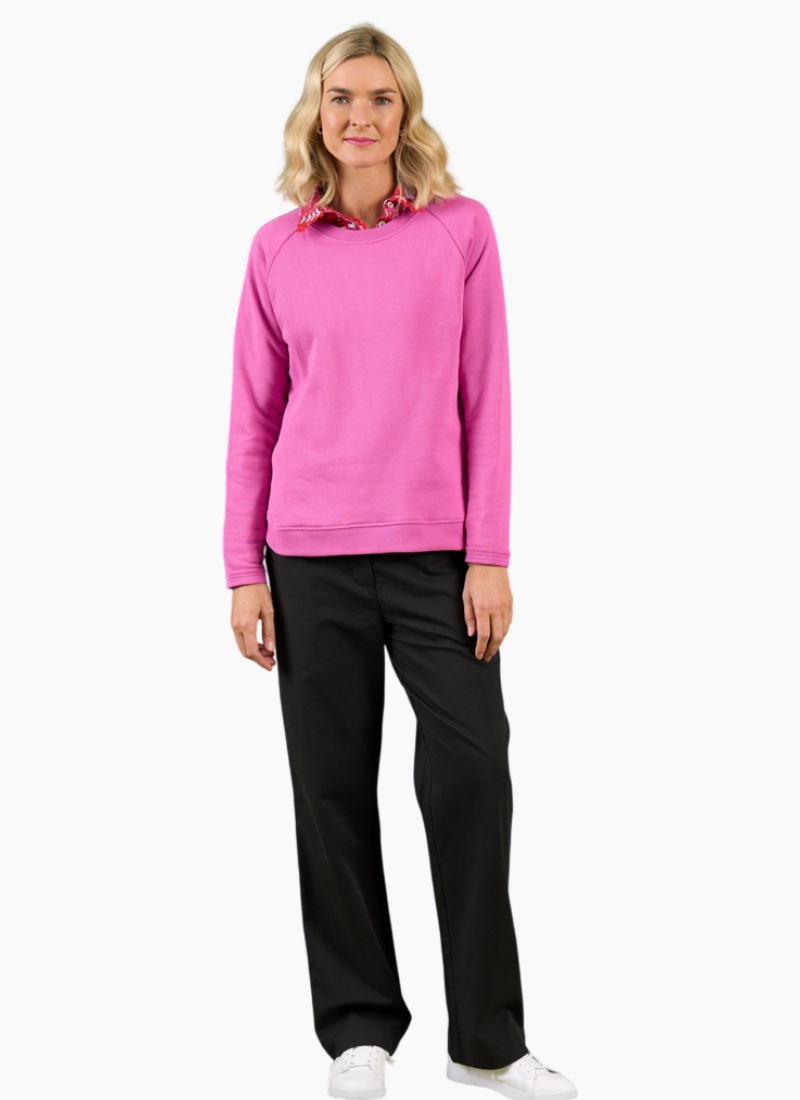 Introducing the Brunswick Crew-Super Pink from Charlie Jane. This cheerful sweatshirt brings a vivid splash of pink to everyday dressing.