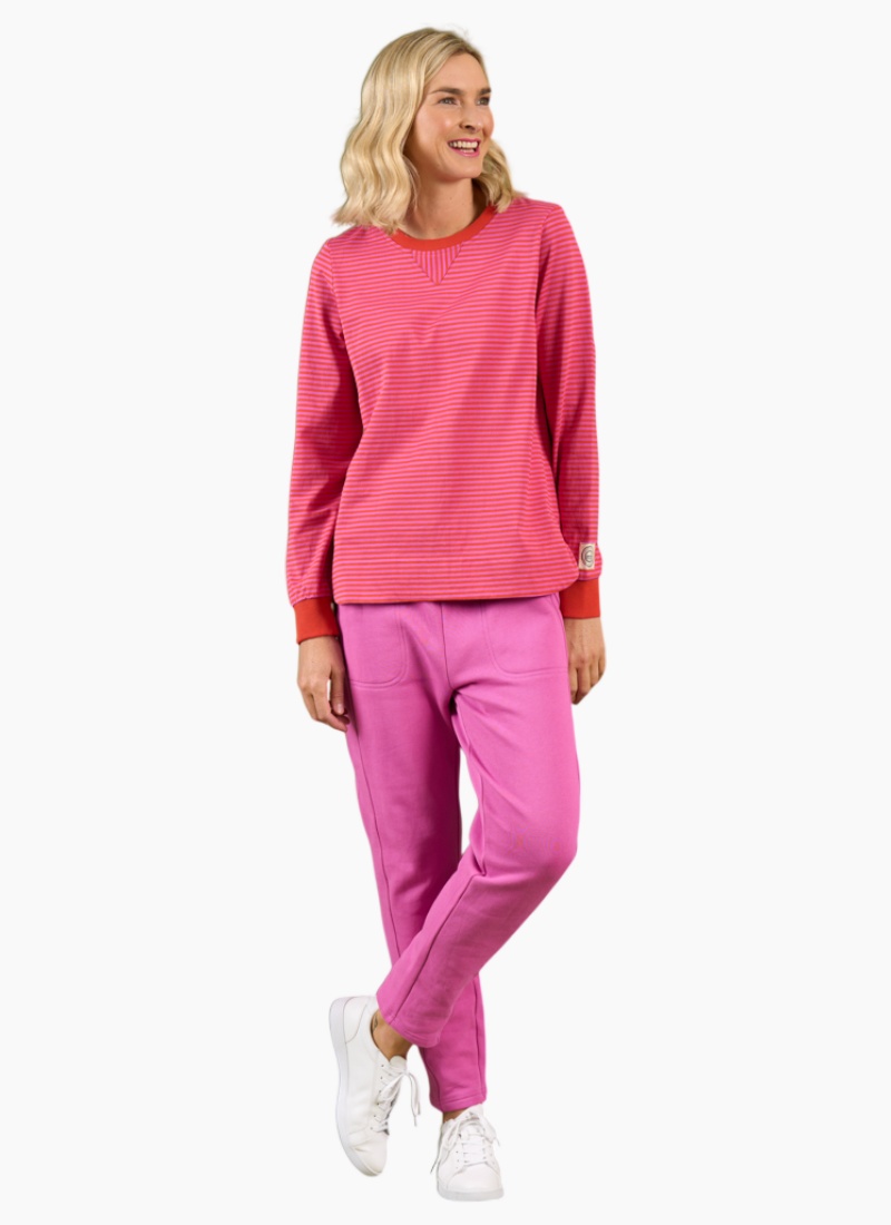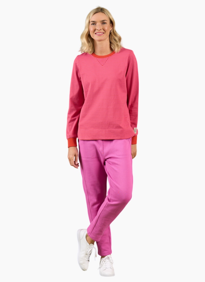 Introducing the Charlie Jane Endeavour Top-Super Pink Stripe. This relaxed striped sweatshirt brings a playful pop of colour to everyday wardrobe rotations.