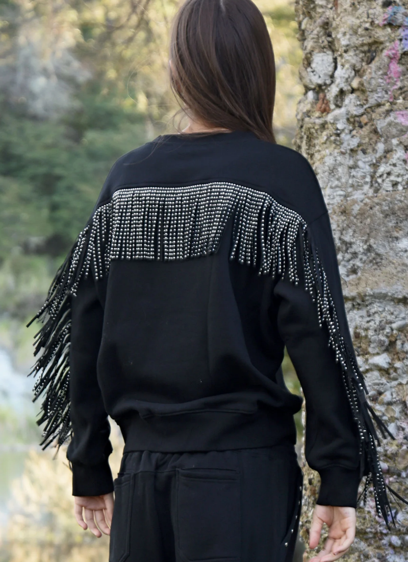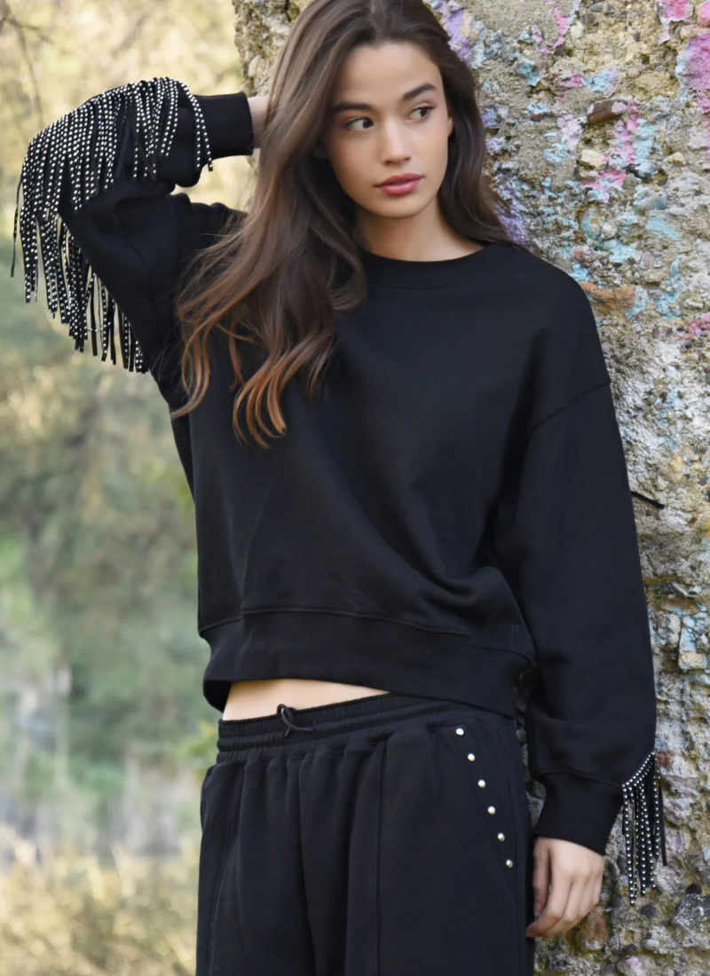 Introducing the Fringe Festival Sweatshirt from COOP. This statement piece pairs everyday comfort with playful, beaded fringe for a fresh, festival-ready vibe
