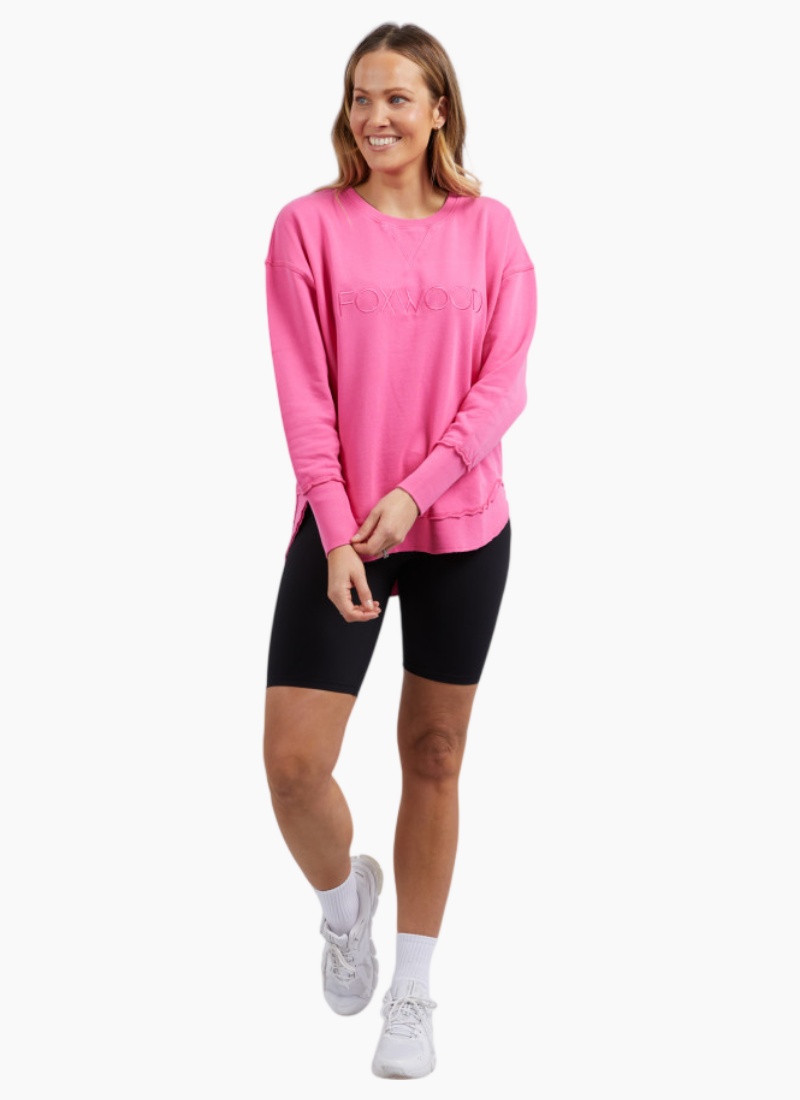 The Simplified Crew is for the Foxwood woman on the go. This basic crew features the Foxwood logo embroidered in simple tonal stitching across the front. it's boxy shape and mid-length hemline make it effortless to style and wear. Embroidered 'FOXWOOD' Round & neck Ribbed cuffs with raw edging Stretch fabric Standard fit 1) Shoulder to front hem approx. 62cm - Size 12 2) Shoulder to back hem approx. 69cm 3) Across bust approx. 64cm