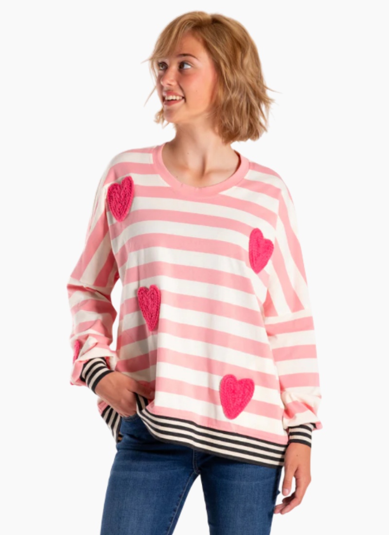 - Candy Stripe from Jellicoe. A playful, cosy sweatshirt in candy-pink stripes finished with tactile heart appliqués.